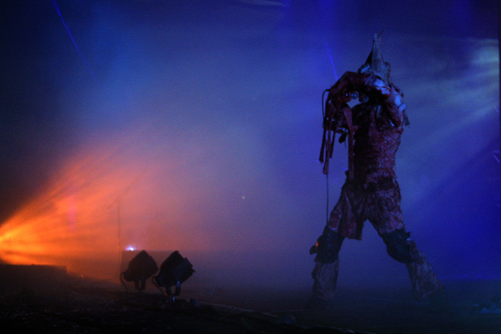 Jedenfalls bot uns „Skinny Puppy“ dann in aller Trockenheit ein Schauspiel des Irrsinns. Ich meine, einen Knall haben wir ja mehr oder weniger alle. Dieser Sänger jedoch scheint total durchgeknallt zu sein. Aber man muss ihn mal live erlebt haben – drückt er doch auf seine Art Gefühle aus, die uns oft umtreiben und uns keine Ruhe gönnen. Das skurril anmutende Outfit verstärkte den Eindruck, in eine Alp-Traum-Welt abgetaucht zu sein. Krass wurde die Welt, wie sie ist, durch die Videos ins grelle Licht gesetzt.