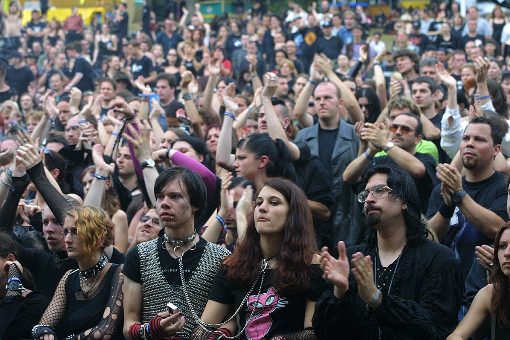 Freitag, der 16. Juli 2004 – ein Linienbus brachte mich und meine riesengroße Tasche voller schwarzer Klamotten von Berlin nach Hof. Von dort dann (nach einem Abstecher in einen Supermarkt, der wirklich sehr viel verkauft…) per PKW mit der wandernden Sonne Richtung Loreley am Rhein. Die Fahrt verlief bis auf eine plötzlich notwendige Umleitung (es war wirklich boshaft: ein Unfall auf einer solch engen Straße!) kurz vor dem Ziel ohne Stau, Unfälle, Wetterunbilden oder anderen sonstigen Misslichkeiten. Die Fahrt auf der Straße am Rhein entlang bot wunderschöne Ausblicke auf romantische Städtchen. Von den Höhen drohten Burgen herab. Der Fluss wand und bog sich schnell strömend. Als Flachlandtiroler begeisterte mich dieser Anblick sehr und ich war in Hoch-Stimmung. Dann die Loreley. Überraschung: schon oben war dann der direkte Weg versperrt. Im Rahmen einer groß angelegten Polizei-Aktion wurden alle Ankommenden nach Drogen und Waffen durchsucht. Fand ich okay. Ärgerlicherweise durfte ich mir meinen Leibes-Visitor NICHT aussuchen…