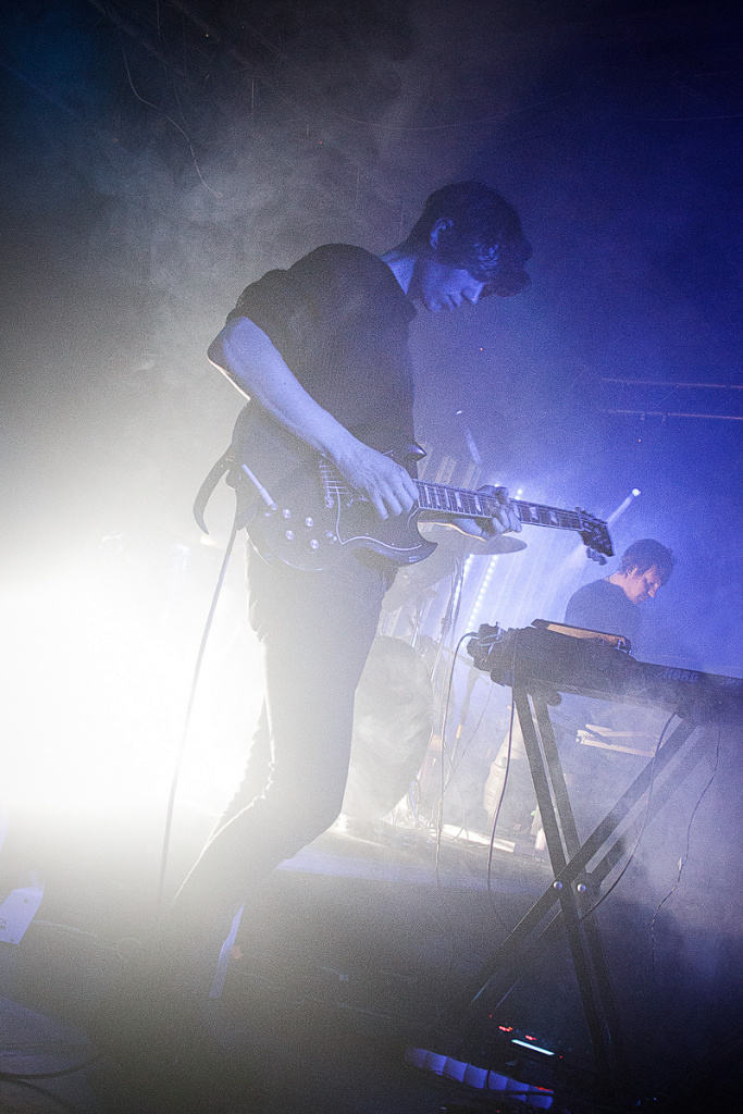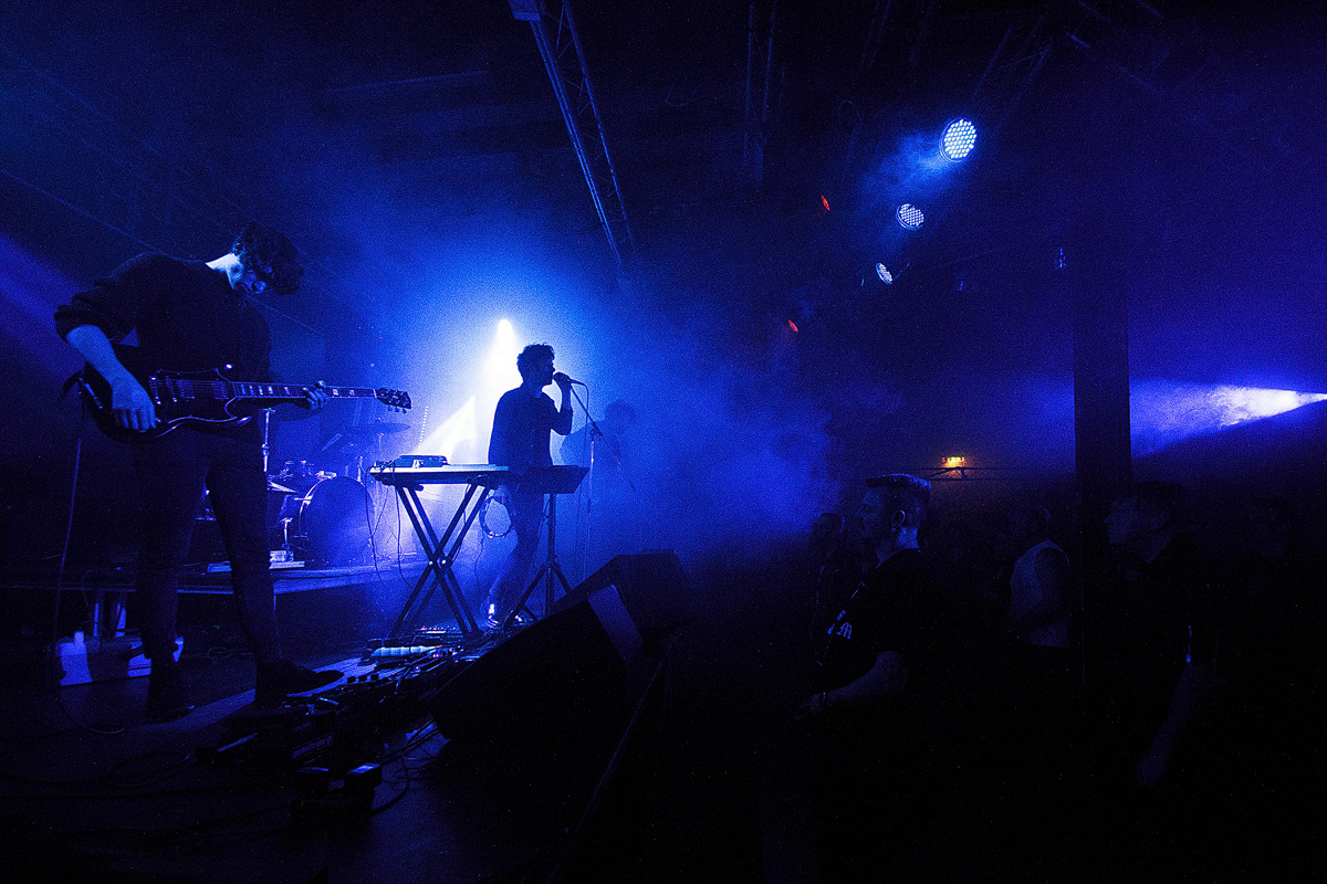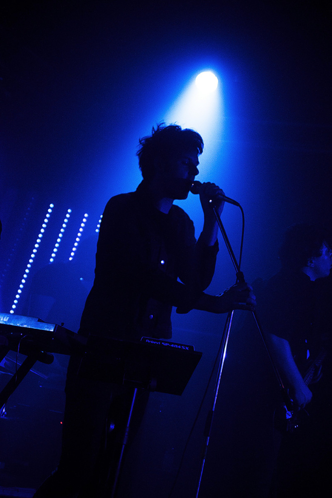 Nach einer überschaubaren Umbaupause entführten „Holygram“ in schwelgerische Klangwelten, die sie selbst mit den Worten „Music for the lost“ treffend beschreiben. Die Kölner Band, die sich beim diesjährigen Wave-Gotik-Treffen in Leipzig bereits vor einem größeren Publikum mehr als nur behaupten konnte, präsentierte melancholische Musik, die Sehnsüchte weckte und fragile Bilder vor das geistige Auge projizierte. Erinnerungen an den Wave und Post-Punk der 80er Jahre wurden geweckt. Von der fortwährend und der gedankenschweren Stimmung perfekt angepasst in kaltes Blau getauchte Bühne „waberten“ den Zuhörern tiefe Basslinien und gefühlvolle Gitarrenmelodien entgegen, denen man sich mit geschlossenen Augen hingebt konnte. „Holygram“ blicken im Vergleich zu „Then Comes Silence“ auf eine weniger „beeindruckende“ Diskografie zurück, aber nichtsdestotrotz bot man einen nicht minder stimmungsvollen und mitreißenden Auftritt, der mit knapp 40 Minuten leider recht kurz ausfiel.