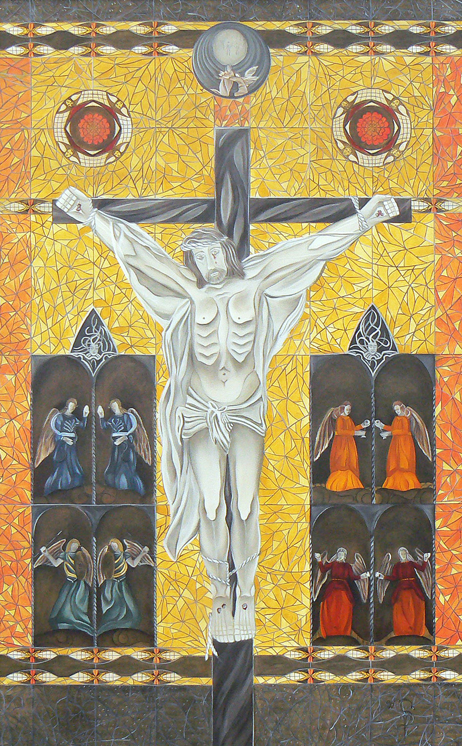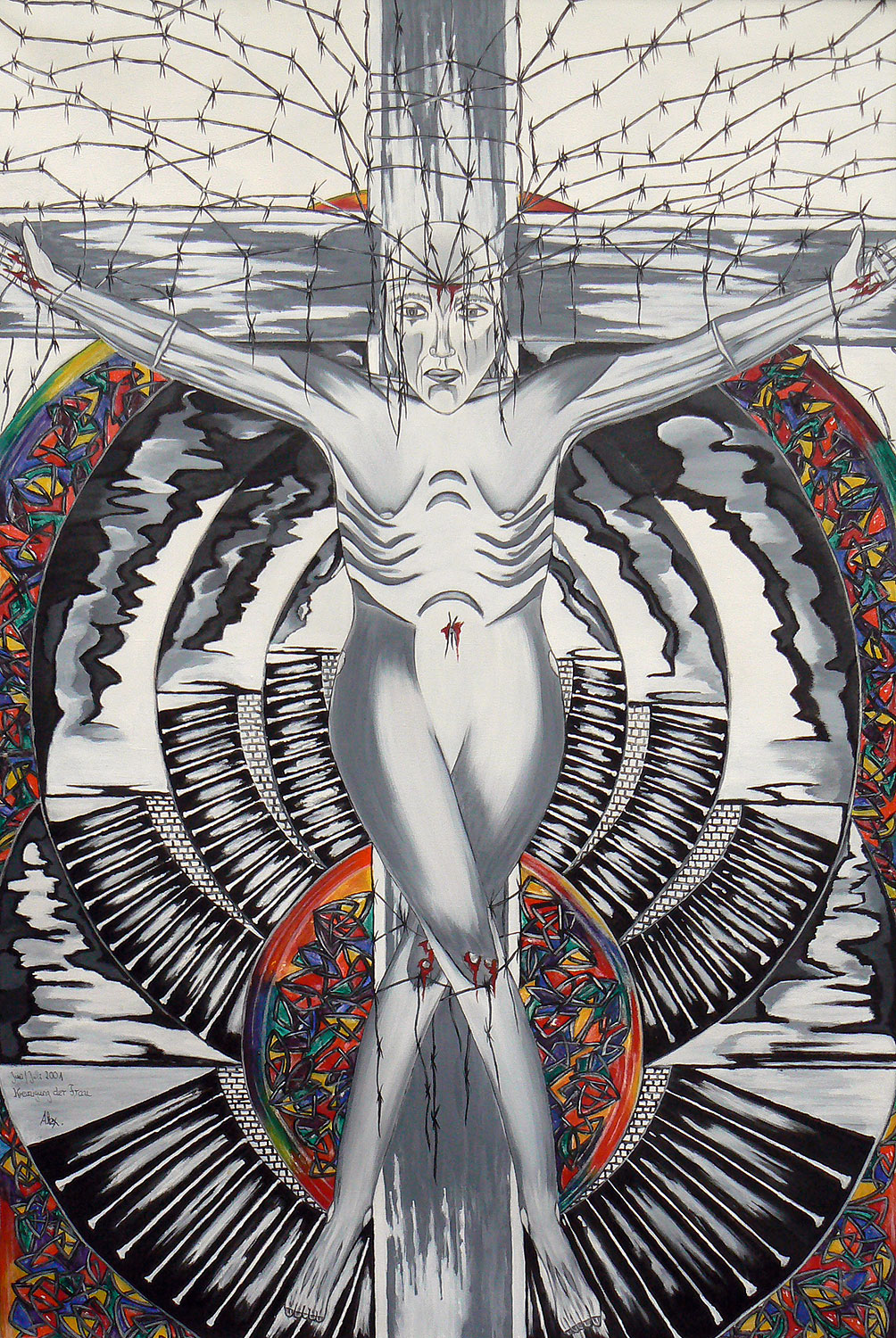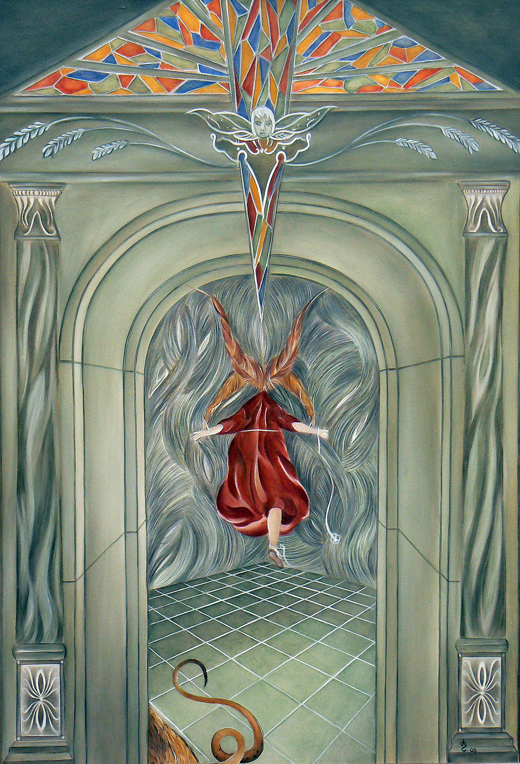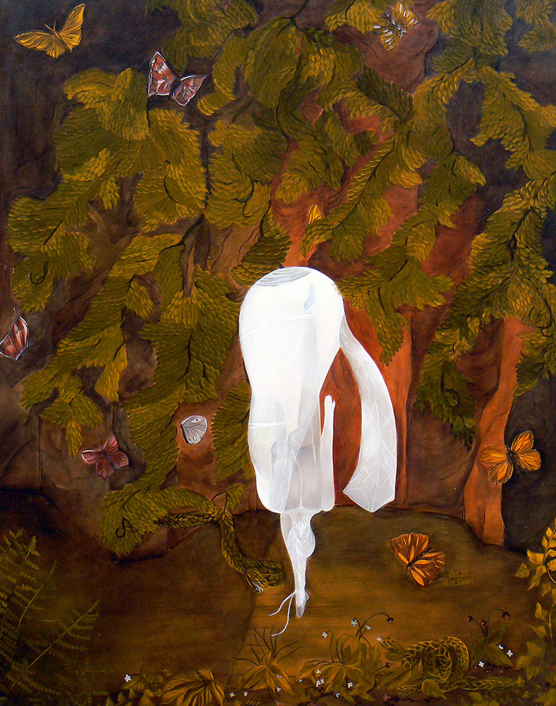 „Die heutige Thematik ist religiösen Ursprungs, gepaart mit Symbolik und Realismus. Im Laufe der Zeit habe ich mich auf sakrale Gemälde spezialisiert. Als leidenschaftliche Sammlerin von Kuriositäten und Antiquitäten verbringe ich gerne Zeit auf dem Flohmarkt. So manch erstandene Figur oder Gegenständliches aus dem Flohmarktfundus findet sich in meinen Bildern wieder. Auch bediene ich mich gerne der Natur und ihrer Vielfältigkeit, oder einem Gang durch den Garten. Wandmalerei, Ornamente, sowie dekorative Gestaltung gehören auch zu meinen Arbeiten.“