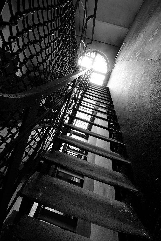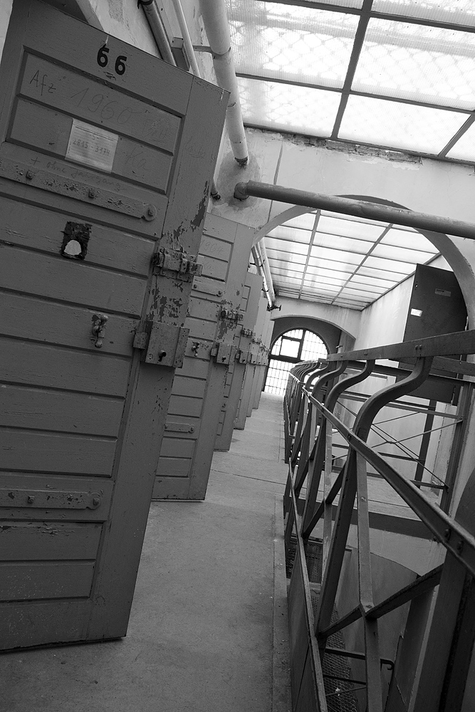 Nach einer informativen Einführung durch den Guide von go2know betreten wir voller Spannung und mit einer gewissen Ehrfurcht den leicht bogenförmigen Komplex – und schlüpfen gedanklich in die Rolle eines Inhaftierten, der einen der schmalen Gänge entlang geführt wird. Diffuses Licht sickert durch ein Glasdach, das sich über dem zentralen Treppenaufgang erhebt. Die Farbe an den Wänden ist rissig und blättert ab. Trotzdem: durch die einfache Beschaffenheit ließe sich dieses Bauwerk wahrscheinlich umgehend wieder in Betrieb nehmen.