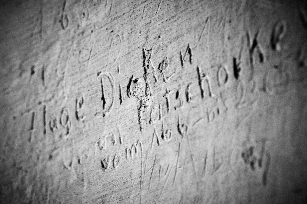 Ein schmaler, an die Wand hochklappbarer Holzrahmen mit Holzlatten diente als Bett. Manche Zellen haben zwei dieser „Klappbetten“ an gegenüberliegenden Wänden angebracht. Zwei Menschen auf etwa sechs Quadratmeter – eine mehr als unangenehme Vorstellung. An manchen Türen deuten vier Einschübe (für Namen oder Nummern?) gar auf eine vierfache Belegung hin. Nein, man mag sich dieses stumpfsinnige Absitzen der Zeit in solch beengten Verhältnissen nicht vor Augen führen. Die dicken Wände, durch welche die Kälte dringt, wirken erdrückend. Ein einziges kleines, auf Kopfhöhe angebrachtes Fenster lässt während unseres vormittäglichen Besuchs ein wenig Licht in den kleinen Raum. Die Vergegenwärtigung der zu anderen Tageszeiten oder bei wolkenverhangenem Himmel vorherrschenden Düsternis und der damit zusätzlich einhergehenden Tristesse ist jedoch nicht schwer. Runde Abdrücke auf dem Zellenboden zeugen von der „sanitären Ausstattung“. Die Insassen mussten für die Verrichtung ihrer Notdurft einen Eimer nutzen. Auch sonst waren die Zellen äußerst spartanisch eingerichtet. Für einen Schrank war kein Platz vorhanden. Regalbretter mussten für damalige Besitztümer ausreichen. Kritzeleien wie die allseits bekannten Striche, mit denen Gefangene die Tage zählten, sind Hinweise auf vergangene Zeiten.