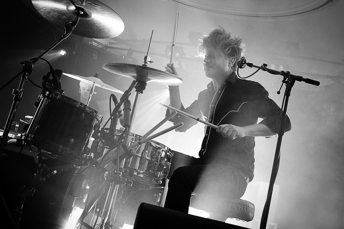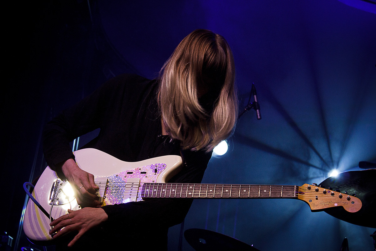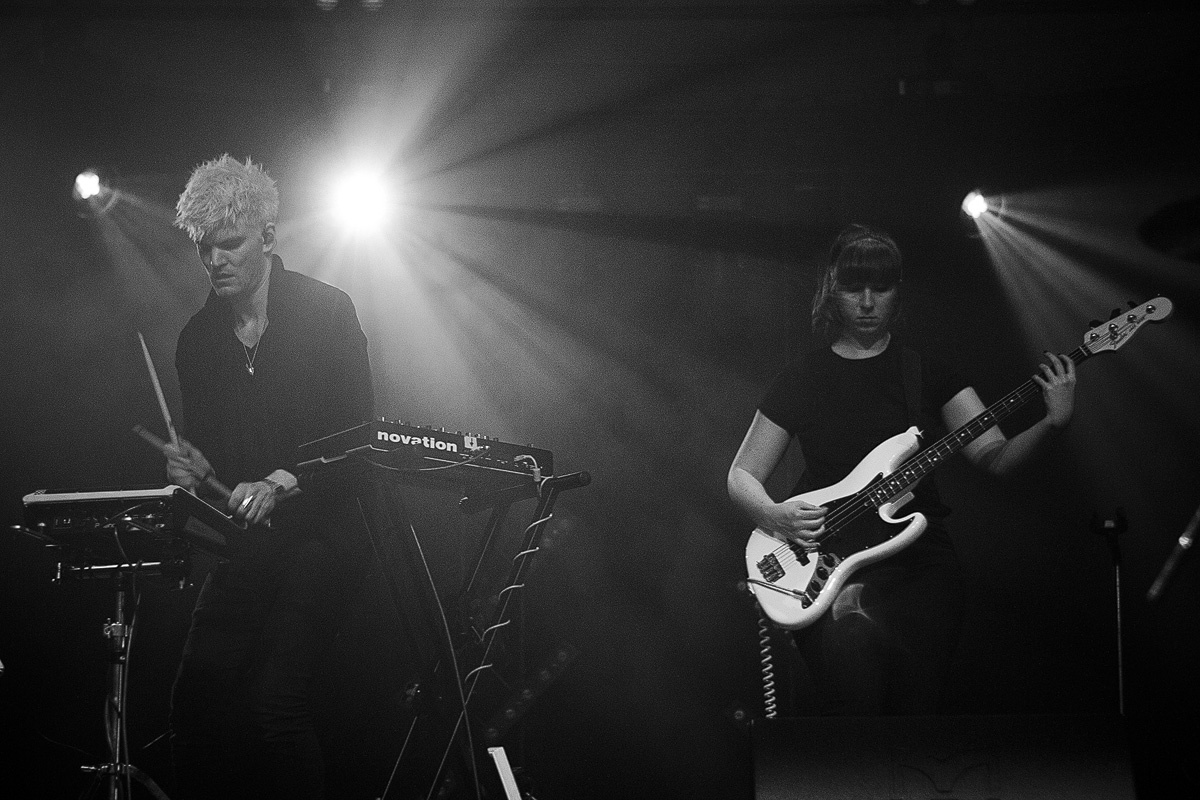 Nachdem der Support „Queen Kwong“ eine halbe Stunde mit teils repetitivem Noise Rock die bereits zahlreich anwesenden Gäste musikalisch eingestimmt hatte, wurde das Publikum auf eine Geduldsprobe gestellt. Etwa 40 Minuten dauerte es, ehe Laura-Mary Carter (Gesang, Gitarre) und Steven Ansell (Gesang, Schlagzeug) die Bühne betraten und einen schweißtreibenden Abend mit „Elijah“ vom Anfang des Jahres erschienenen Album „Get Tragic“ einleiteten. Eine Veröffentlichung, die nach einer schöpferischen Pause und einer schweren Zeit eine Art Neuanfang darstellt. Es folgten zwei weitere neue Stücke, bei denen das englische Duo ebenso wie bei der Konzerteröffnung von der ehemaligen „Grammatics“-Musikerin Lindsay Wilson (Bass) und „Tigercub“-Schlagzeuger James Allix (Elektronik) unterstützt wurde, bevor man das zunehmend euphorisierte Publikum wieder zu zweit auf eine Reise durch die Bandgeschichte mitnahm. Druckvoll und mit reichlich Energie präsentierten „Blood Red Shoes“, deren märchenhaft und doch makaber klingende Name auf die blutig getanzten Füße der Schauspielerin Ginger Rogers zurückgehen soll, dröhnende wie raue Passagen neben eingängigen Melodien. Proportional zur anwachsenden Tanzwut vieler Gäste nahm der Sauerstoffgehalt der Luft ab. Nach und nach war ein Großteil der Konzertbesucher in Bewegung. Einzig auf den beiden Emporen und an den Rändern hielt man sich dezent zurück. Mit einem einprägsamen Refrain, den man herrlich mitsingen bzw. -schreien konnte, bildete „Light It Up” einen gefeierten Ausklang des „Mittelteils“ dieses Konzerts. Anschließend kamen die beiden Gastmusiker zurück auf die Bühne, um das Publikum mit viel Schwung und Leidenschaft zurück in die Gegenwart zu befördern und vier zusätzliche Titel vom letzten Album vorzustellen. Sichtlich zufrieden und dankbar verschwanden „Blood Red Shoes“ nach 17 Songs im Backstage. Natürlich nicht ohne den heftigen Applaus und das Bitten nach Zugaben zu erhören. So kam das Berliner Publikum in den Genuss von drei weiteren Stücken, deren Anzahl im Rahmen der aktuellen Tour offenbar kein Standard ist. Viele der Anwesenden stürzten sich ein letztes Mal ins Getümmel. Nach knapp 85 Minuten entließen die bejubelten „Blood Red Shoes“ viele zufriedene Gesichter in die Berliner Nacht…
