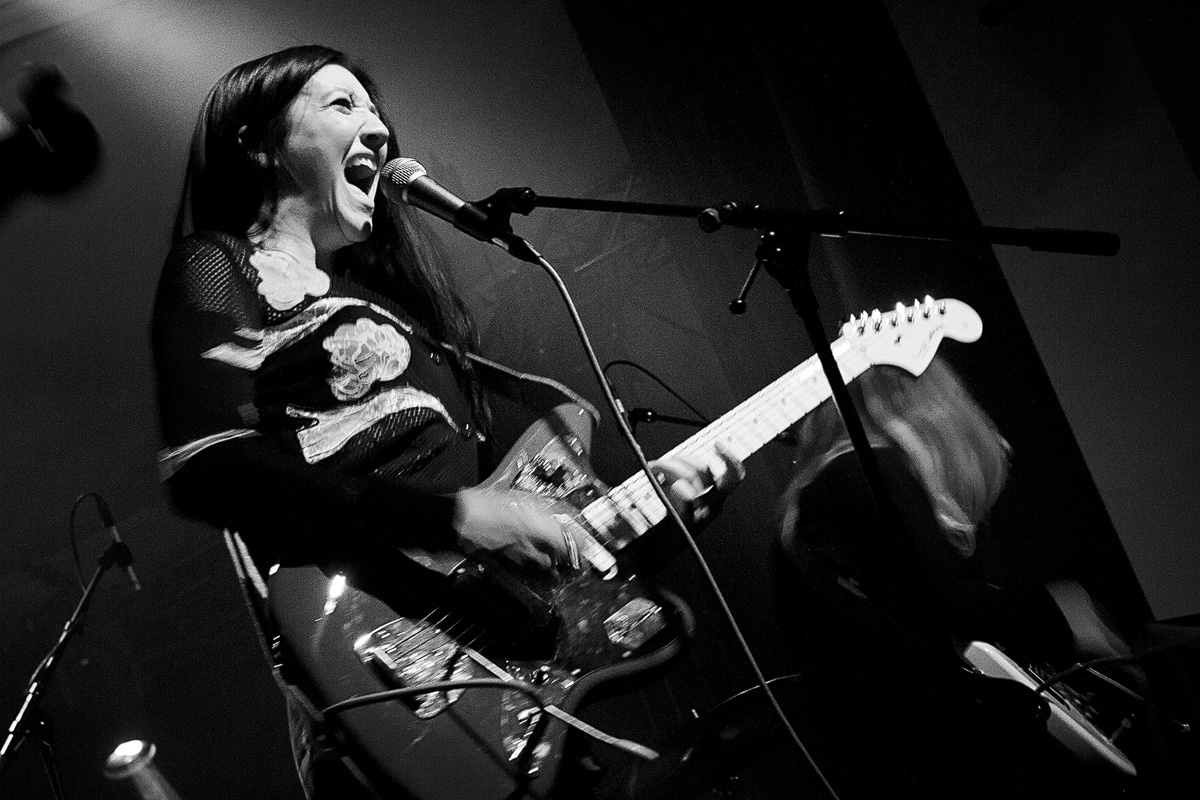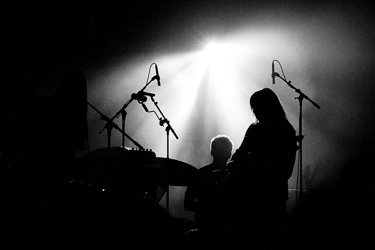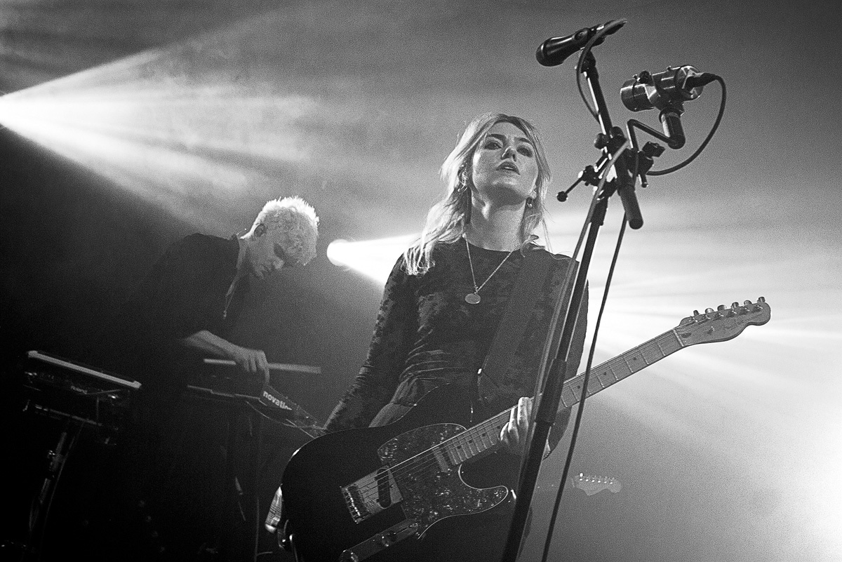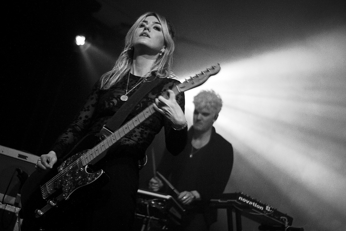 Nachdem der Support „Queen Kwong“ eine halbe Stunde mit teils repetitivem Noise Rock die bereits zahlreich anwesenden Gäste musikalisch eingestimmt hatte, wurde das Publikum auf eine Geduldsprobe gestellt. Etwa 40 Minuten dauerte es, ehe Laura-Mary Carter (Gesang, Gitarre) und Steven Ansell (Gesang, Schlagzeug) die Bühne betraten und einen schweißtreibenden Abend mit „Elijah“ vom Anfang des Jahres erschienenen Album „Get Tragic“ einleiteten. Eine Veröffentlichung, die nach einer schöpferischen Pause und einer schweren Zeit eine Art Neuanfang darstellt. Es folgten zwei weitere neue Stücke, bei denen das englische Duo ebenso wie bei der Konzerteröffnung von der ehemaligen „Grammatics“-Musikerin Lindsay Wilson (Bass) und „Tigercub“-Schlagzeuger James Allix (Elektronik) unterstützt wurde, bevor man das zunehmend euphorisierte Publikum wieder zu zweit auf eine Reise durch die Bandgeschichte mitnahm. Druckvoll und mit reichlich Energie präsentierten „Blood Red Shoes“, deren märchenhaft und doch makaber klingende Name auf die blutig getanzten Füße der Schauspielerin Ginger Rogers zurückgehen soll, dröhnende wie raue Passagen neben eingängigen Melodien. Proportional zur anwachsenden Tanzwut vieler Gäste nahm der Sauerstoffgehalt der Luft ab. Nach und nach war ein Großteil der Konzertbesucher in Bewegung. Einzig auf den beiden Emporen und an den Rändern hielt man sich dezent zurück. Mit einem einprägsamen Refrain, den man herrlich mitsingen bzw. -schreien konnte, bildete „Light It Up” einen gefeierten Ausklang des „Mittelteils“ dieses Konzerts. Anschließend kamen die beiden Gastmusiker zurück auf die Bühne, um das Publikum mit viel Schwung und Leidenschaft zurück in die Gegenwart zu befördern und vier zusätzliche Titel vom letzten Album vorzustellen. Sichtlich zufrieden und dankbar verschwanden „Blood Red Shoes“ nach 17 Songs im Backstage. Natürlich nicht ohne den heftigen Applaus und das Bitten nach Zugaben zu erhören. So kam das Berliner Publikum in den Genuss von drei weiteren Stücken, deren Anzahl im Rahmen der aktuellen Tour offenbar kein Standard ist. Viele der Anwesenden stürzten sich ein letztes Mal ins Getümmel. Nach knapp 85 Minuten entließen die bejubelten „Blood Red Shoes“ viele zufriedene Gesichter in die Berliner Nacht…