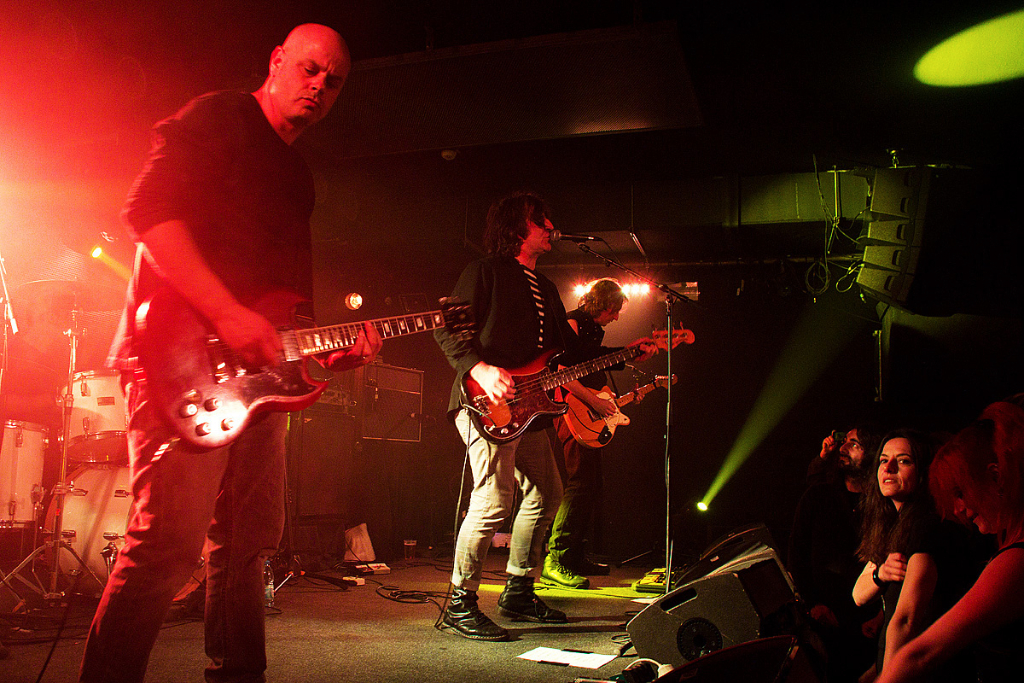 Ungeduldig wurden somit „ChameleonsVox“ erwartet. Die britische Band – ursprünglich unter dem Namen „The Chameleons“ 1981 gegründet und 2002 aufgelöst – gilt als unterschätzter Mit-Wegbereiter des Post Punk. Seit einigen Jahren sucht sich Sänger/Bassist Mark Burgess Musiker, mit denen er gemeinsam voller Begeisterung und Temperament die melancholisch rockigen Songs zurück auf die Bühne bringen kann. Der Funke zwischen Publikum und Band sprang sofort über. Köpfe und Beine zuckten. Teilweise wurde ausgelassen getanzt. Mitreißend die „alten“ Stücke, die vielen im Publikum vertraut waren und so manchen zum fröhlichen Mitsingen veranlasste. (Was wohl glücklicherweise im „Klanggewitter“ unterging.) Neben der Leidenschaft, die die fünf Musiker transportierten, beeindruckte ein zweireihiges, etwa ein Meter langes und mit Trittschaltern ausgestattetes „Pult“. Zahlreiche Effekte wurden hier per Fuß gesteuert. Die variantenreichen und eingängigen Klänge rissen die Zuhörer zu reichlich Applaus hin. Auch meine Handflächen brannten. Das persönliche Kopfkino ließ mich innerlich hüpfen wie ein kleines Kind und die Emotionen im Geiste herausschreien. Die Begeisterung schlug hohe Wellen. Einfach große Klasse!