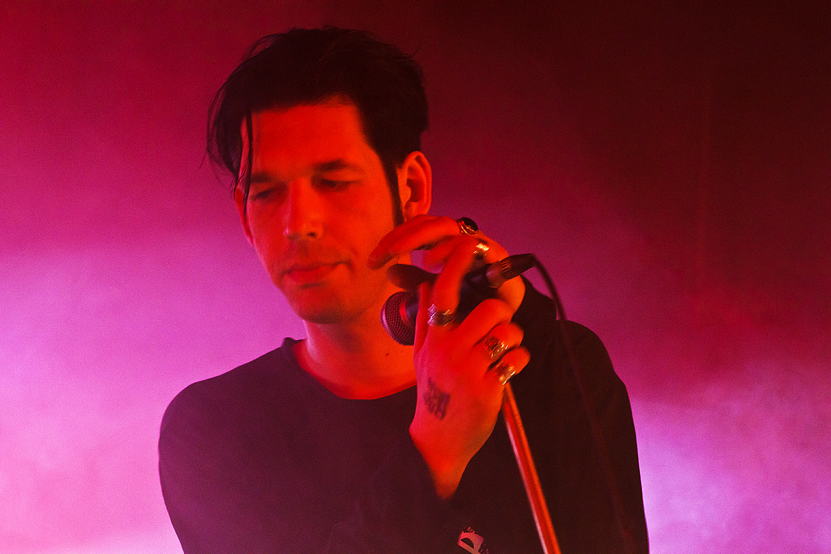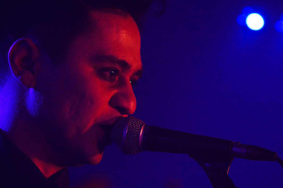 Trotz eines etwas verspäteten Einlasses musste nicht lange gewartet werden, bis die erste Band des Abends „The Wars“ die Bühne betrat. Zwei in sich gekehrte Gitarristen, dazu zwei Laptops mit dem berühmten Apfellogo, die für die rhythmische Komponente sorgten. Sänger Chris Kowski glänzte mit einer warmen dunklen klaren Stimme. Mit zumeist geschlossenen Augen schien er eins mit der Musik zu sein. Melodisch und rhythmisch waberten die Klänge – eine Mischung aus Moderne und Nostalgie – in die Köpfe und Beine. Ein guter Einstieg in den Abend. Direkt an der Bühne standen einige „Mutige“ und die Fotografen, dahinter eine Art Rettungsschneise bis zum „Gäste-Block“. Eine Zugabe war nicht vorgesehen; ein straffes Zeitregime mit kurzen Umbauphasen sorgte für wenig Leerlauf.