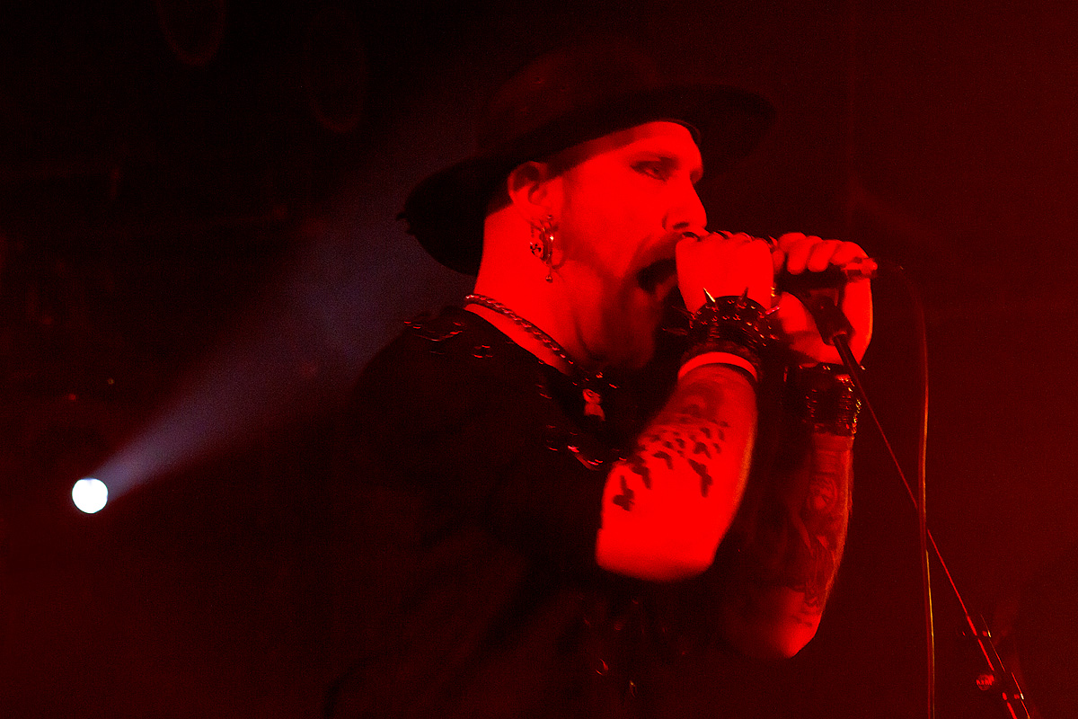Ist es eine undankbare Aufgabe, so einen Abend zu beschließen? Viele Gäste hatten „ihre Band“ gehört und waren nun bereits seit über fünf Stunden auf den Beinen. „NFD“ aus England konnten die Massen jedenfalls nicht halten. Die Reihen lichteten sich merklich. Einige dürften sich über den Schlagzeuger geärgert haben, der sich während der letzten Stücke von „She Past Away“ direkt neben der Bühne auf Gegenständen bzw. dem Boden einspielte. Zumindest für die in der Nähe Stehenden unüberhörbar. Ebenso durfte man über das Posieren des Gitarristen differenzierter Meinung sein. Letztendlich war die Musik für viele Hörer aber vielleicht einfach zu metallastig. Harte Gitarrenriffs, treibendes, schepperndes Schlagwerk, wuchtige Bassläufe und mit Peter White ein Sänger, der stellenweise an Carl McCoy (Fields Of The Nephilim) erinnerte, oftmals aber auch in ein gewisses Grunzen abdriftete. Insgesamt scheinbar nicht jedermanns Sache.