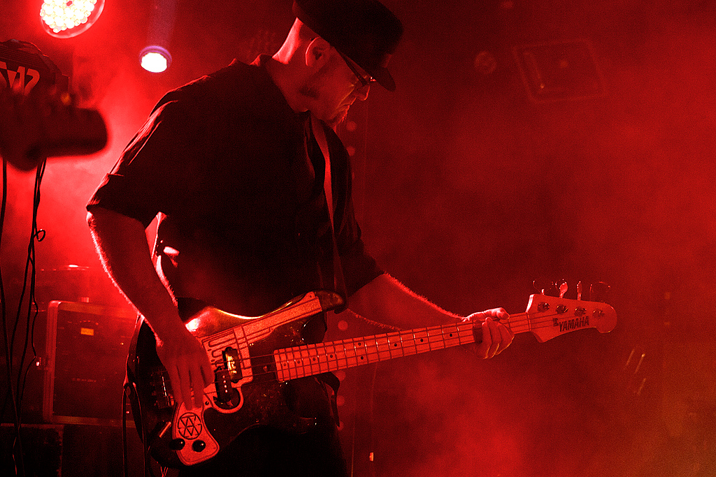 An vorletzter Stelle gingen die Gastgeber „an den Start“. Die 1998 u.a. von den Brüdern Peer (Gesang) und Christian Lebrecht (Bass) gründete Band aus Berlin sind einfach bemerkenswert. Sie bleiben dem eigenen experimentellen Anspruch treu und wissen jedes Mal die Zuhörer aufs Neue in eine musikalische Welt der Melancholie zu entführen. Zentraler Fixpunkt dieser Klänge ist die dunkle, atmosphärische Stimme von Peer Lebrecht. Wie immer mit Zigarette. Wie immer zurückhaltend. Und wie immer begeisternd.