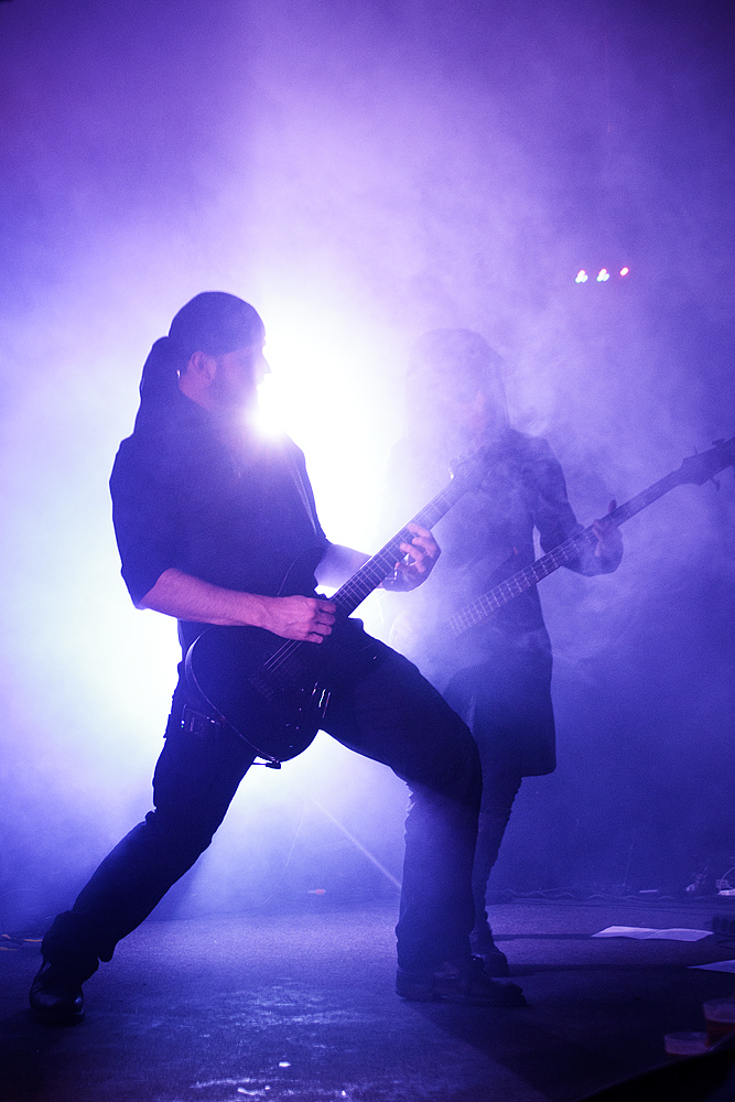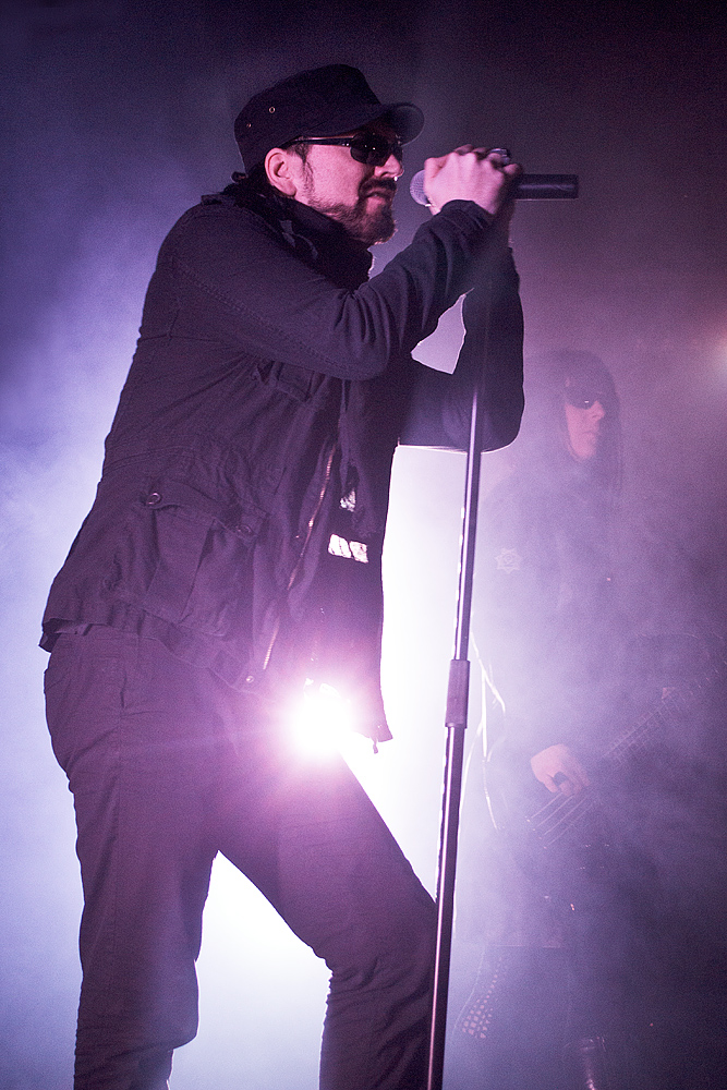 Den absolut würdigen Abschluss bildeten „Merciful Nuns“. Die deutsche Gothic-Rock-Formation ging aus der 2008 aufgelösten Band „Garden Of Delight“, die man getrost als „legendär“ bezeichnen kann, hervor. Aber auch „Merciful Nuns“ konnten sich in den letzten Jahren eine große Anhängerschar erspielen. Was aufgrund des faszinierenden Auftritts wohl niemand mehr wundern dürfte. Unmittelbar nach dem Intro brach ein Klang- und Lichtgewitter los. Die Stimmung im Publikum wurde zunehmend unbändiger. Die große Bühnenpräsenz von Sänger Artaud Seth – flankiert von Bassistin Jawa Seth und Gitarrist Jon Tmoh – riss scheinbar jeden mit. Seine eindringliche Stimme und die überaus dunkle, ja fast „erdrückende“ Atmosphäre waren überwältigend. Auf den Schultern von Anderen balancierende Fans drückten ihre Hingabe und Bewunderung mit ausgestreckten Armen und einem Banner aus (und erinnerten so an Auftritte von „Fields Of The Nephilim“ und „New Model Army“).