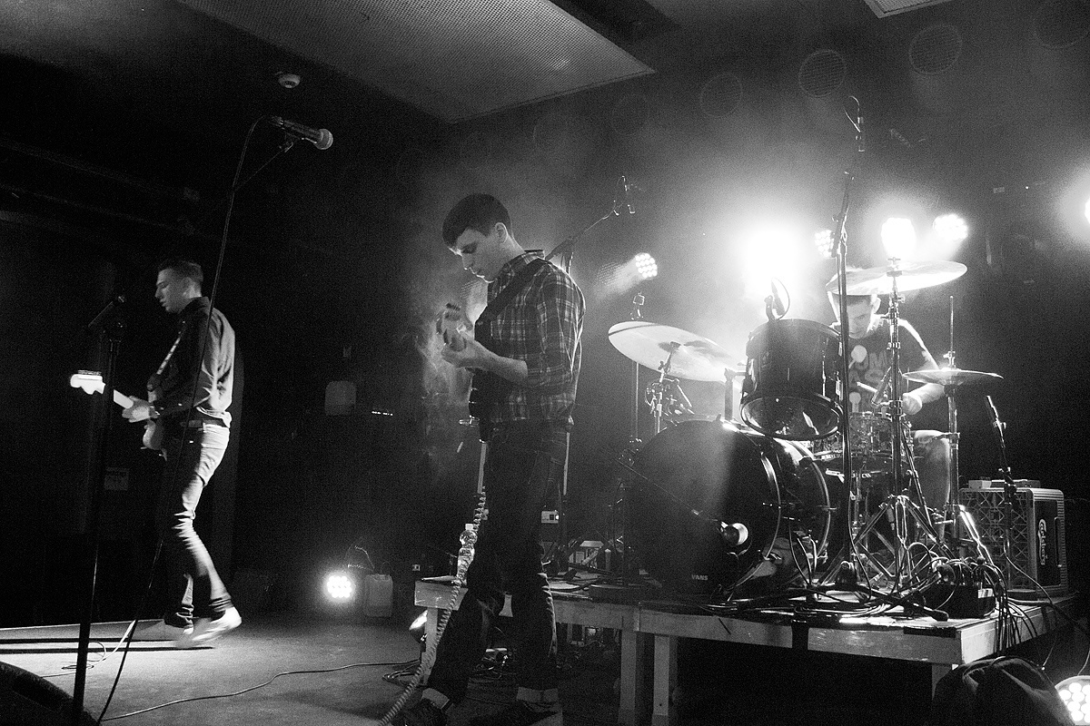Die Umbaupause wurde genutzt, um ein Getränk zu fassen, ein Schwätzchen zu halten oder frische Luft zu schnappen, ehe vier brave Jungs – Stil: Schwiegermutters Liebling – auf die Bühne kamen. Turnschuhe, ordentlich gescheiteltes Haar. Der Sänger trug ein kariertes Hemd und Jeans mit umgeschlagenen Säumen. Dieses Unscheinbare erinnerte ein klein wenig an die großen „Joy Division“ und so waren wir äußerst gespannt, was da kommen mag. Eine sehnsuchtsvoll klingende Stimme, schwelgerische Gitarren, ein melodischer Bass. Mit sichtbarer Freude – ja, fast kindlicher Leidenschaft – und voller Vehemenz bearbeitete der Schlagzeuger seine Gerätschaften. Die melancholischen Stücke krochen unaufhaltsam in unsere Körper. „Brandenburg“ aus Moskau war DIE Entdeckung des Abends. Umwerfend und empfehlenswert. Prädikat: besonders wertvoll.