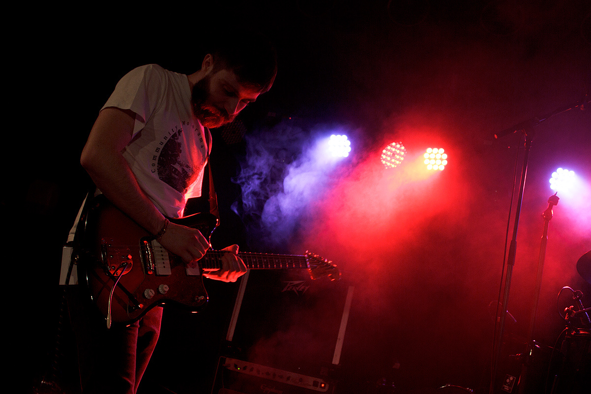 Daraufhin begrüßte „Soviet Soviet“ aus Italien die Festivalbesucher. Das Klischee des besonders leidenschaftlichen Italieners erfüllte der Sänger, welcher auch den Bass spielte, zu 100 Prozent. Tanzen, tänzeln, springen, sich biegen, herumschleudern – eine Ekstase, bei welcher gar der Stecker des Basses herausgerissen wurde. Was den Bewegungsdrang aber keineswegs eindämmen konnte. Und so ließen sich Zuhörer und Zuschauer weiter von der treibenden Rhythmik, verhallenden Gitarrenriffs und einem „scheppernden“ Bass mitreißen, bevor sich Bassist als auch Gitarrist zum Abschied auf die Knie begaben und ihren Instrumenten mittels diverser Effektgeräte experimentelle Geräusche entlockten. Toll.