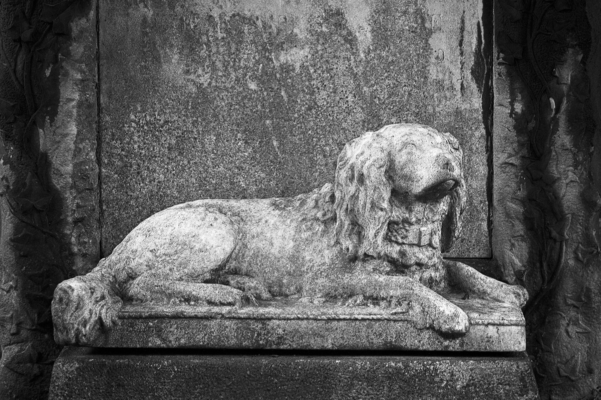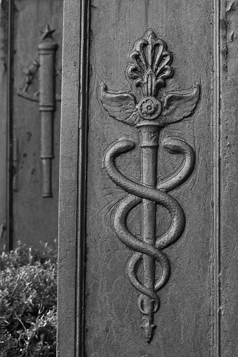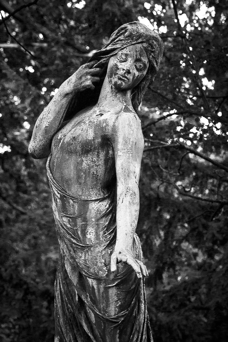 Die Skulpturen und Grabsteine wirken dadurch tatsächlich wie Schmuck in einem Park, der von der Bevölkerung zur Erholung genutzt wird. Rätselhafte Darstellungen ließen mich wiederholt innehalten. Auf einem Stein entdeckte ich eine Schlange, deren langer, zu einem Oval gewundener Körper voller Runen ist. Im Zentrum dieser Darstellung befindet sich ein christliches Kreuz. Diese Verbindung mag ungewöhnlich erscheinen, erklärt sich aber mit dem Wissen, dass die Schriftzeichen der Germanen in einigen Regionen Skandinaviens auch nach der Christianisierung bis ins 19. Jahrhundert Verwendung fanden. Entzifferungsversuche blieben erfolglos. Manche Motive scheinen hingegen der ägyptischen Pharaonenzeit entlehnt. Andere lassen auf Freimaurer schließen. Ein steinerner Hund bewacht die letzte Ruhestätte seines ehemaligen Besitzers. Ein grazil gearbeiteter Reiher zog meinen Blick ebenso an wie eine lasziv wirkende Dame, die sich kokett das Haar zurückstreicht. Das Seltsamste war allerdings eine Skulptur mit zahlreichen Brüsten. Ein Bildnis der Artemis Ephesia, Tochter des Zeus und Keto. Göttin der Jagd, des Waldes und des Mondes. Hüterin der Frauen und Kinder. Der berühmte Tempel von Ephesos – eines der sieben Weltwunder – wurde ihr geweiht. Archäologische und literarische Zeugnisse beschreiben ihren Oberkörper als mit vielen Brüsten bedeckt. Christliche Deutungen stellen sie als Ernährerin aller Lebewesen dar. Die letzten Sonnenstrahlen kämpften sich durch das Grün der Bäume, ehe langsam die Dämmerung einsetzte, ich den Ausgang ansteuerte und wieder einmal feststellen durfte, dass ein Friedhof gleichermaßen Wissensvermittler und Kulturbotschafter ist.