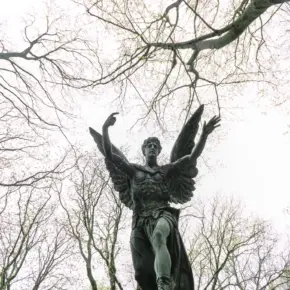 Engel sind allgegenwärtig. Etwa als mitleidende Wesen voller Kummer und Schmerz. Oder als Begleiter des Übergangs ins Himmelreich mit ausgebreiteten Flügeln und hoffnungsvollen Blick nach oben.