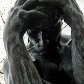 Andere Arbeiten sind direkter. Tief im Schatten oder hinter Händen verborgene Gesichter. Gekrümmte, in sich zusammengesunkene Körper. Ausdruck von Trauer und Wehmut.