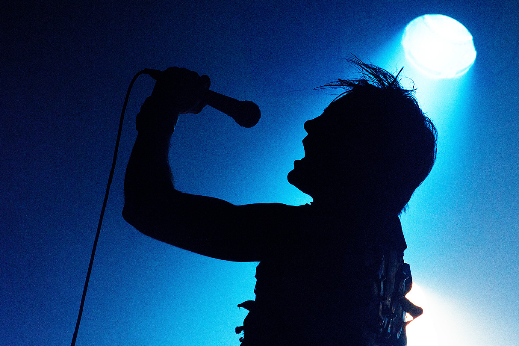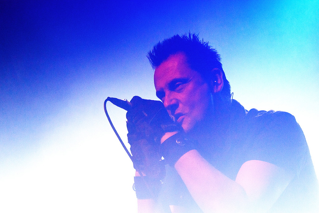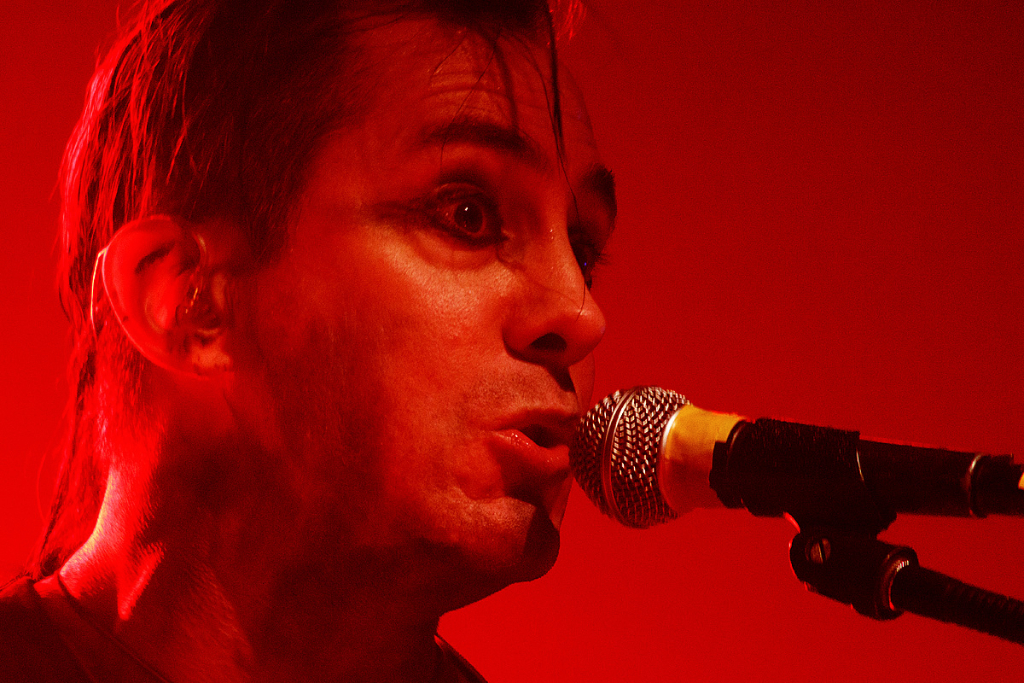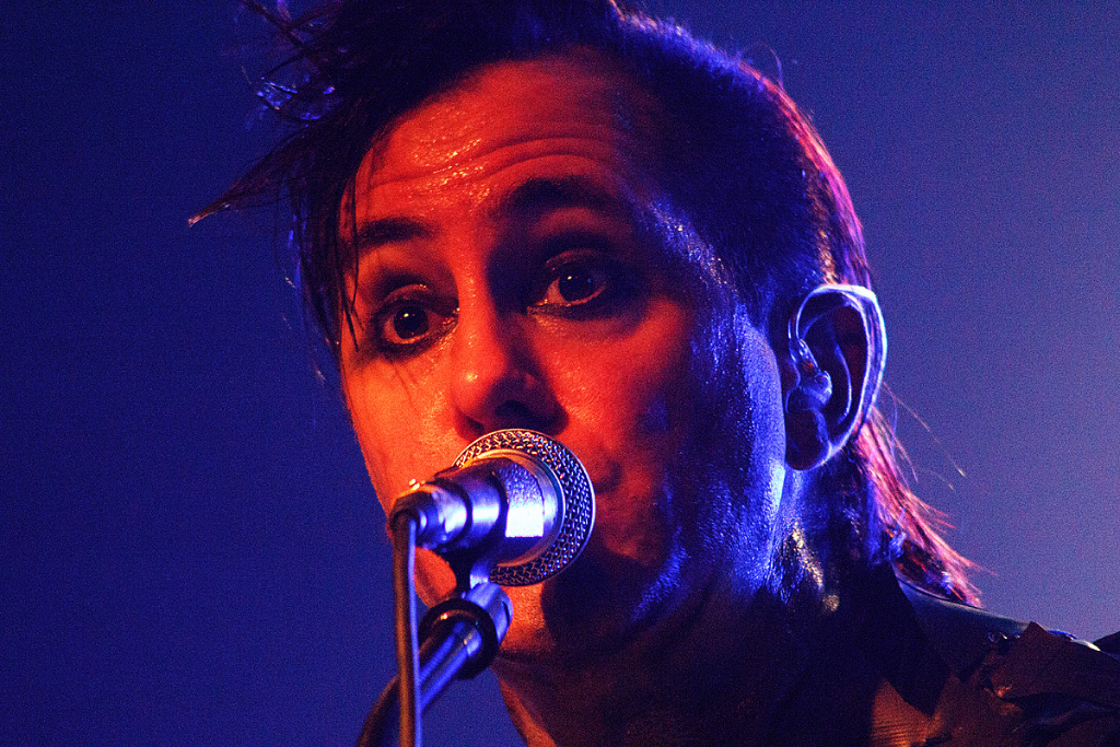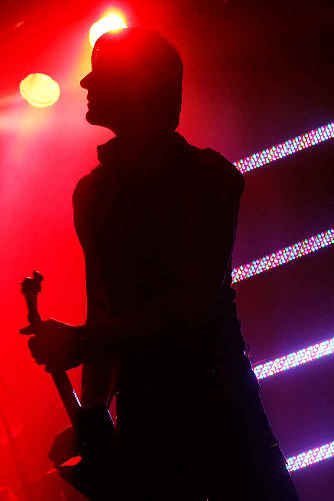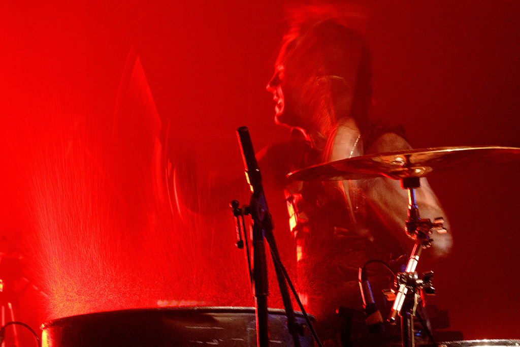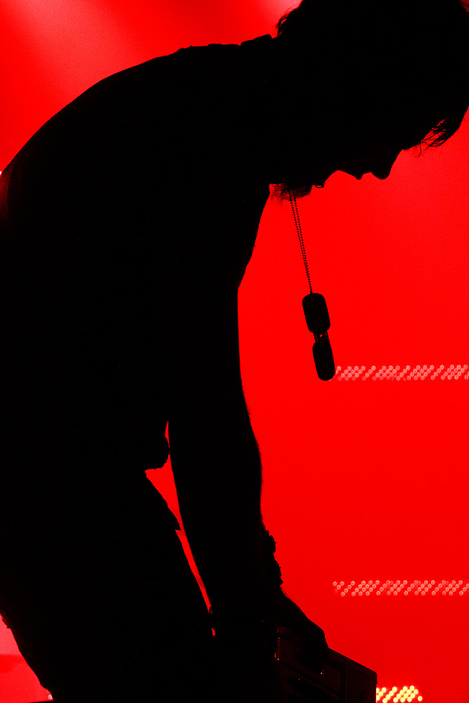 Was folgte, war eine viel zu lange Pause. Als würden „Die Krupps“ nur auf das Schreien, Johlen und Pfeifen warten. Die Anspannung stieg beinahe ins Unermessliche. Doch endlich hatten die „Urgesteine“ – Jürgen Engler, Ralf Dörper und Rüdiger Esch – ein Einsehen. Der Begrüßungs-Applaus brandete den Musikern umgehend entgegen. Hinter dem Schlagzeug nahm übrigens der bereits erwähnte Bradley Bills von „Chant“ Platz – eine durchaus auch körperlich bemerkenswerte Leistung. Am Bühnenrand stand das obligatorische Stahlophon – bestehend aus verschiedenen Stahlrohren, die Jürgen Engler mit aller Wucht u.a. bei Klassikern wie „Metal Machine Music“ und „Wahre Arbeit wahrer Lohn“ bearbeitete. Und auch sonst stand Jürgen Engler im Mittelpunkt des Geschehens – dynamisch, kraftvoll und laut.