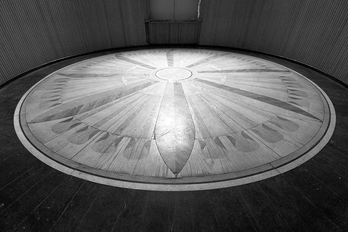Ein Stockwerk tiefer fanden wir große Räume mit plastisch wirkenden Malereien: Säulen, Girlanden, Blumen. Ein festlicher Anblick. Anschließend rief ein Klavier Begeisterung hervor. Ließ sich doch gut erahnen, wie sich auf der extra dafür angelegten kleinen Parkettfläche so manches Tanzpaar einstmals sanft wiegte. Doch nun ist das Instrument verstummt. Vorbei die Zeit, in der weiche Pianomelodien den Raum erfüllten.