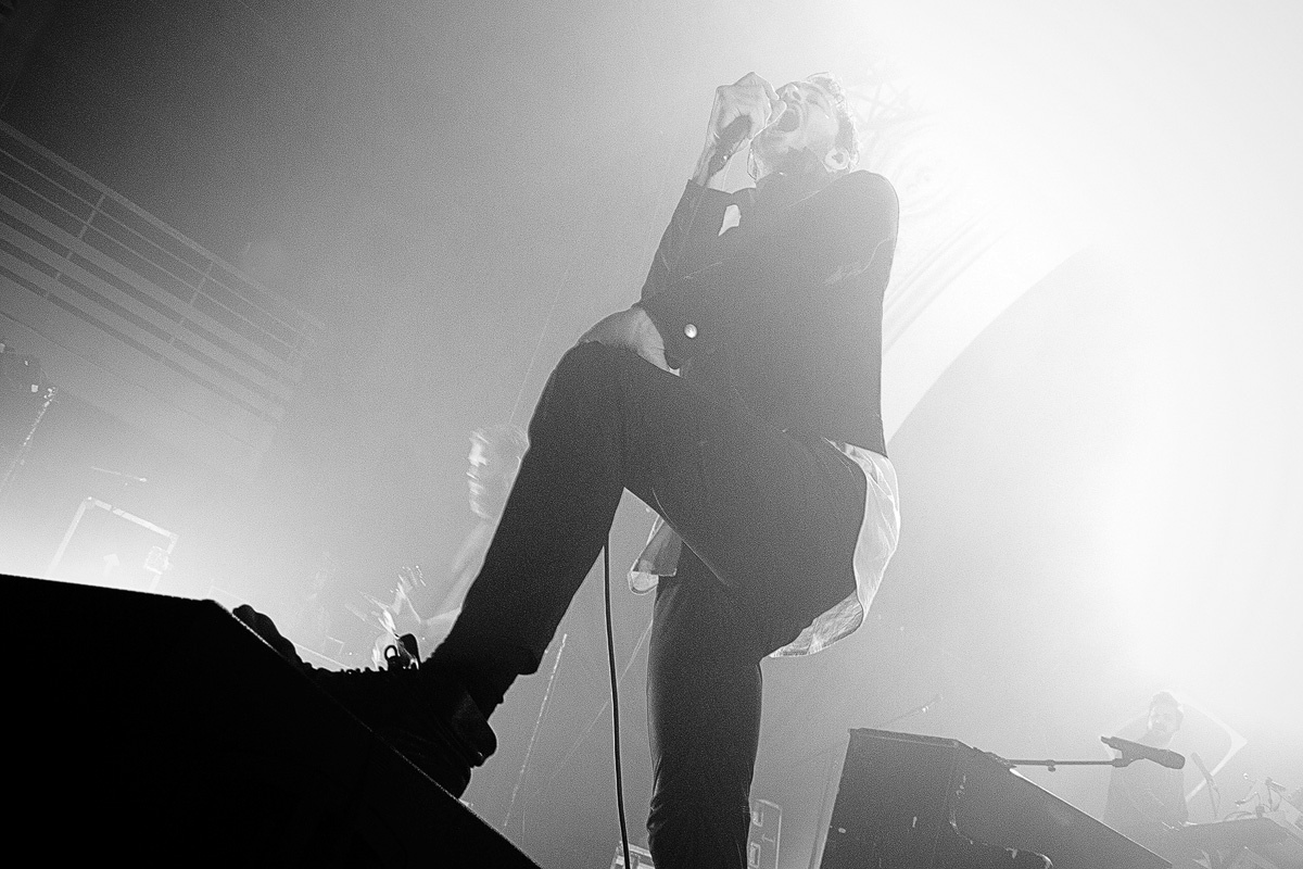 Nach einer Pause, die sich für Manchen unerträglich lange anfühlte, war es endlich soweit: Mit „Hallelujah (So Low)“ startete ein mitreißender Auftritt. Den ihnen vorauseilenden Ruf, eine hervorragende Liveband zu sein, wurden die „Editors“ an jenem Abend absolut gerecht. Die Mischung aus neuen Stücken vom Anfang März erschienenen sechsten Studioalbum „Violence“ und den eingangs erwähnten Klassikern konnte man sich nur schwer entziehen. Nach und nach legten die letzten Besucher ihre Zurückhaltung ab und gaben sich den herrlichen Melodien, der packenden Energie und der wunderbaren Stimme von Tom Smith hin. Die Begeisterungswelle bahnte sich ihren Weg bis in die letzte Reihe. Beeindruckend. Ein vortreffliches Lichtkonzept erschuf einen perfekten optischen Rahmen für den dargebotenen Post-Punk-inspirierten Indie Rock. Wehmütig-sehnsüchtige Passagen und das Einstreuen von ruhigeren Stücken gab Raum, um seinen Gedanken nachzuhängen, Emotionen wirken zu lassen und neue Spannung aufzubauen, ehe man vom Strudel des Gefühlsüberschwangs erneut mitgerissen wurde. Mit dem großartigen, etwa achtminütigen „Papillon“, welches am Klavier/Keyboard eingeleitet wurde und großen Jubel auslöste, mobilisierten die fünf Musiker nochmals die Massen, ehe nach über 100 Minuten und 22 Songs ein schöner Konzertabend mit dem Titel „Marching Orders“ einen visuell wie akustisch würdigen Abschluss inklusive Gänsehautfaktor fand: Als Tom Smith noch einmal am Klavier Platz nahm, im Hintergrund wabernde Lichtstrahlen seine Silhouette herausarbeiteten und sich der Song langsam steigerte, wurden ein letztes Mal viele Hände nach oben gestreckt und die Worte des Refrains lautstark mitgesungen.