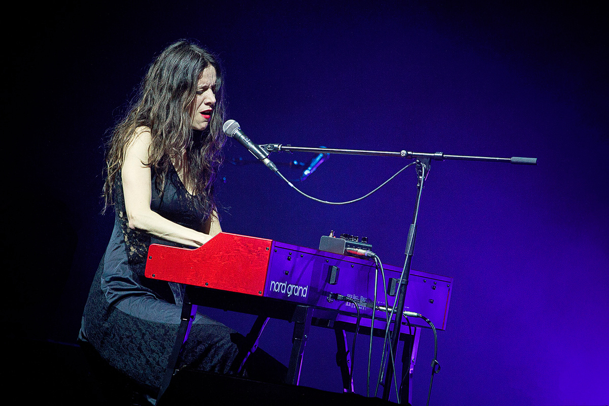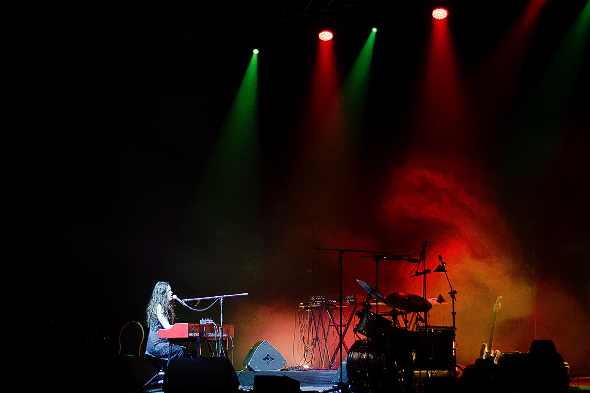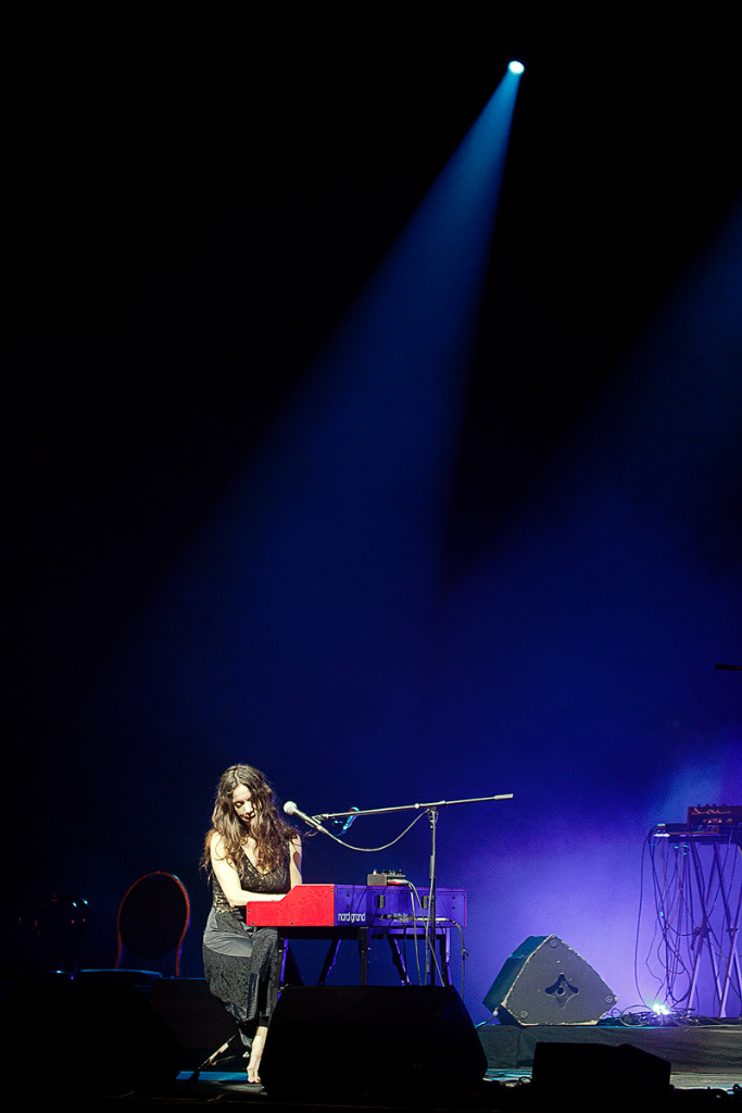 Doch ehe „Efterklang“ (dänisch: Nachhall) ihr Konzert mit den Klängen des Stücks „Monument“ behutsam eröffneten, stimmte die schüchtern wirkende Kristín Anna (Gesang und Piano) das Publikum mit einem Soloauftritt ein. Fast ein wenig befremdlich mutete ihre außerordentlich hohe Stimme an. In einem kindlich-lieblichen Gesang, der zuweilen an Kate Bush erinnerte, spiegelte sich die Zurückhaltung der 1982 geborenen Isländerin wider.