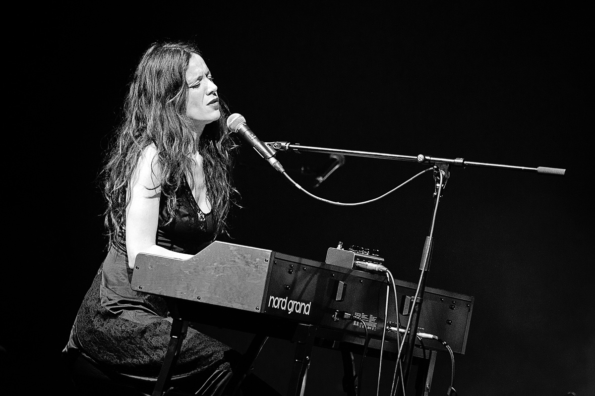 Nicht wenige Konzertbesucher dürften das Verlangen verspürt haben, die allein auf der Bühne agierende Musikerin schützend in die Arme zu nehmen. Für einen ungewöhnlichen Auftritt gab es viel Applaus.