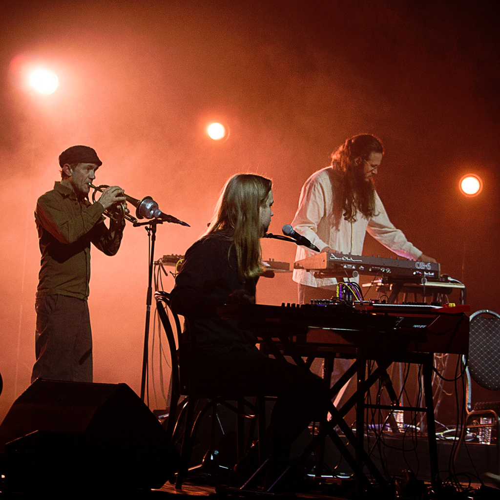 Synthesizer bildeten bei vielen Titeln die Basis. Dazu Blechblasinstrumente, Percussion, Schlagzeug, Bass. Mal umfangreichere, mal reduzierte Arrangements. Experimentell und doch fesselnd. Die gefühlvolle Musik aus akustischen und elektronischen Elementen erfüllte den Saal in hervorragender Klangqualität.