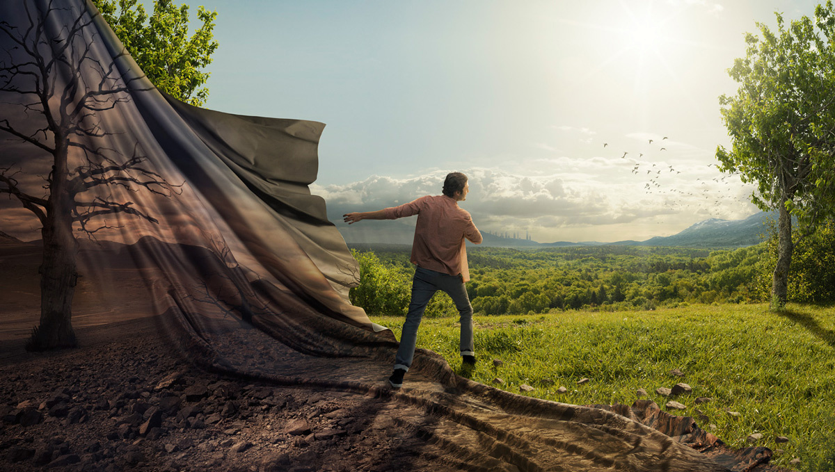 „Ich spielte mit den Fotos am Computer herum, wo man etwas so verändern kann, das man nicht mit der Kamera erfassen kann. Das waren meistens sehr grundlegende Änderungen: Farben tauschen oder das Abbild meiner kleinen Schwestern auf ein Hausdach setzen. So begann mein Interesse an der Fotomanipulation. Ich lernte es, indem ich es einfach versuchte, aber es wurde erst Jahre später ein Beruf.“