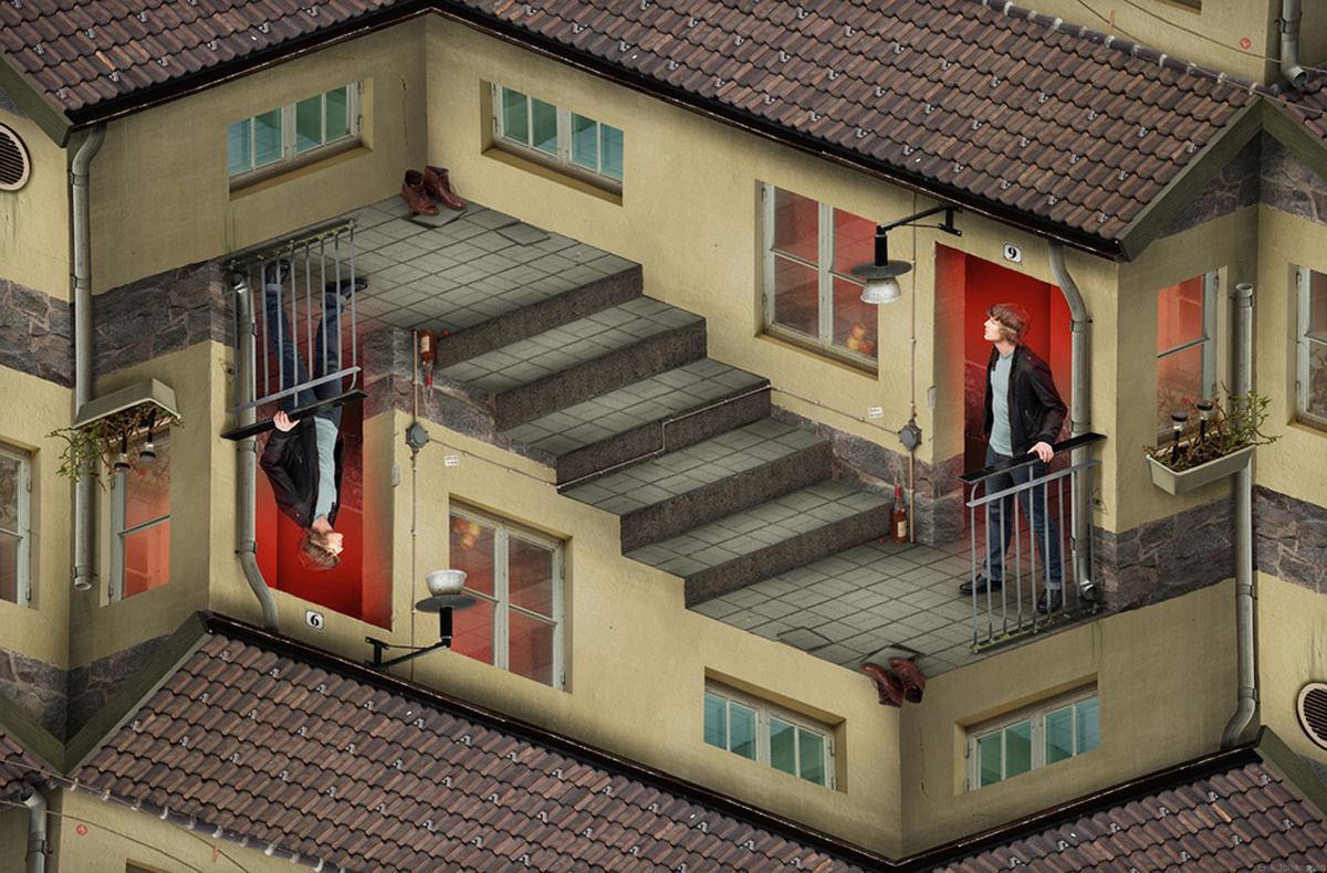 Wirklich tolle Ideen und starke Fotomontagen aus schönen Bildern. Ein ständiges Spiel mit Illusionen. Manchmal fühlte ich mich sehr an M.C. Escher erinnert, sicher ist einiges in der Tradition seiner Werke entstanden und wird hier auf moderne Art fortgeführt.