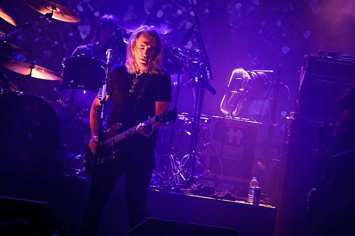HUXLEYS NEUE WELT, BERLINNew Model Army blicken auf 39 Jahre, 15 Alben, über 240 Songs und unzählige Konzerte zurück. Manch andere Band würde sich auf dieser beeindruckenden Historie ausruhen. Nicht so die 1980 in Bradford gegründete Band, die nach wie vor ein Garant für außerordentliche Konzerterlebnisse ist. Was die britischen Musiker bei ihrem Auftritt am 12. Oktober im mit etwa 1600 Besuchern ausverkauften Huxleys, einer Berliner Location mit Geschichte – fanden an jener Stelle doch bereits 1880 die ersten Konzerte statt, unter Beweis stellen konnte. Justin Sullivan, einzig verbliebendes Gründungsmitglied und „Sprachrohr“ der Band, Michael Dean, Marshall Gill, Dean White und Ceri Monger sprühten vor Leidenschaft und präsentierten alte Klassiker wie frisches Material voller Spielfreude. Schnell sprang der Funke auf die ersten Reihen über und man spürte, dass die Musiker immer noch etwas zu sagen haben und u. a. von der Politik der USA (Stichwort Trump), Umweltverschmutzung und Klimawandel umgetrieben werden. Themen, die wütend machen und New Model Army von Beginn an beschäftigen und sich musikalisch wie textlich niederschlagen. So besitzen auch die Aussagen und Inhalte älterer Titel eine gewisse Aktualität. Dem „fucking Brexit“ (O-Ton Justin Sullivan) ist es zu verdanken, dass „51st state“ – ein, nein, DER bei Konzerten zeitweise unberücksichtigt gebliebene Klassiker – ins Programm aufgenommen wurde.