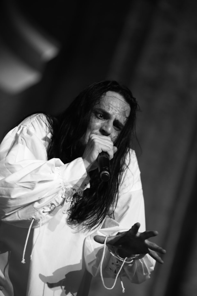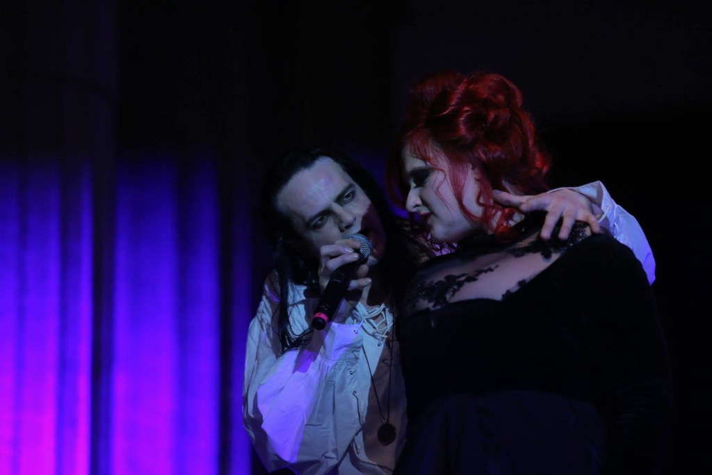 Ohne jetzt auf eine Reihenfolge einzugehen – auf der Bühne geschahen die wunderbarsten Dinge. Der dämonische Oswald Henke wurde von einer gleichgesinnten Schar Musiker begleitet. Tanzeinlagen passend zu den Stücken, die unterschiedlichste Stimmungen hervorriefen. Der erste Akt widmete sich der schwermütigen Romantik, wo hingegen der zweite Teil des Abends düster und abgründig war. Jeweils zehn Stücke erzählten unterschiedliche Geschichten und entführten so manchen Gast in die eigene Vergangenheit, als die musikalische Melancholie und die dunklen Gedanken von Goethes Erben entdeckt und lieben gelernt wurden.