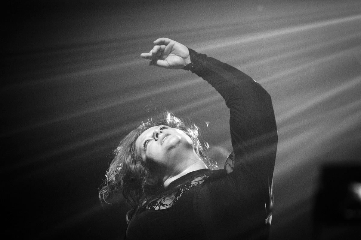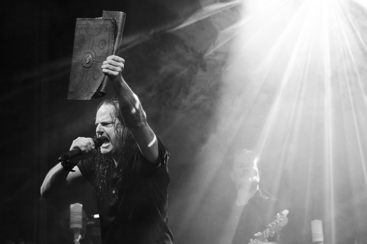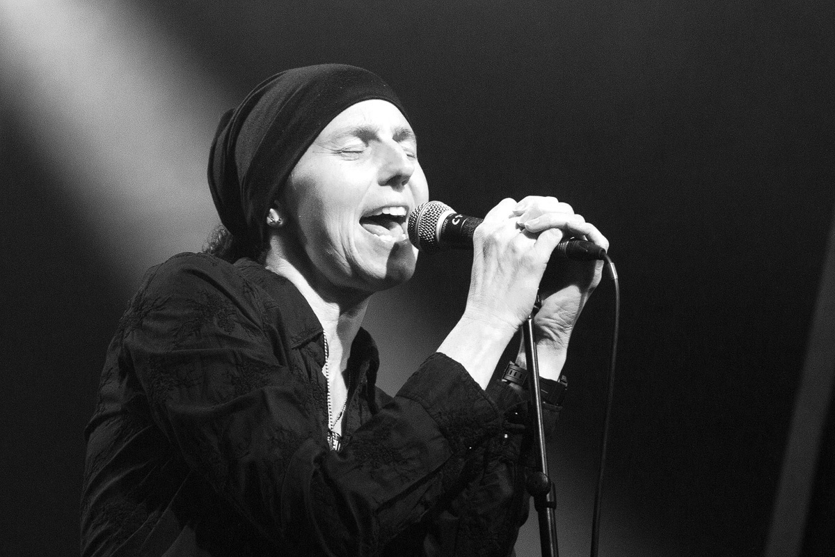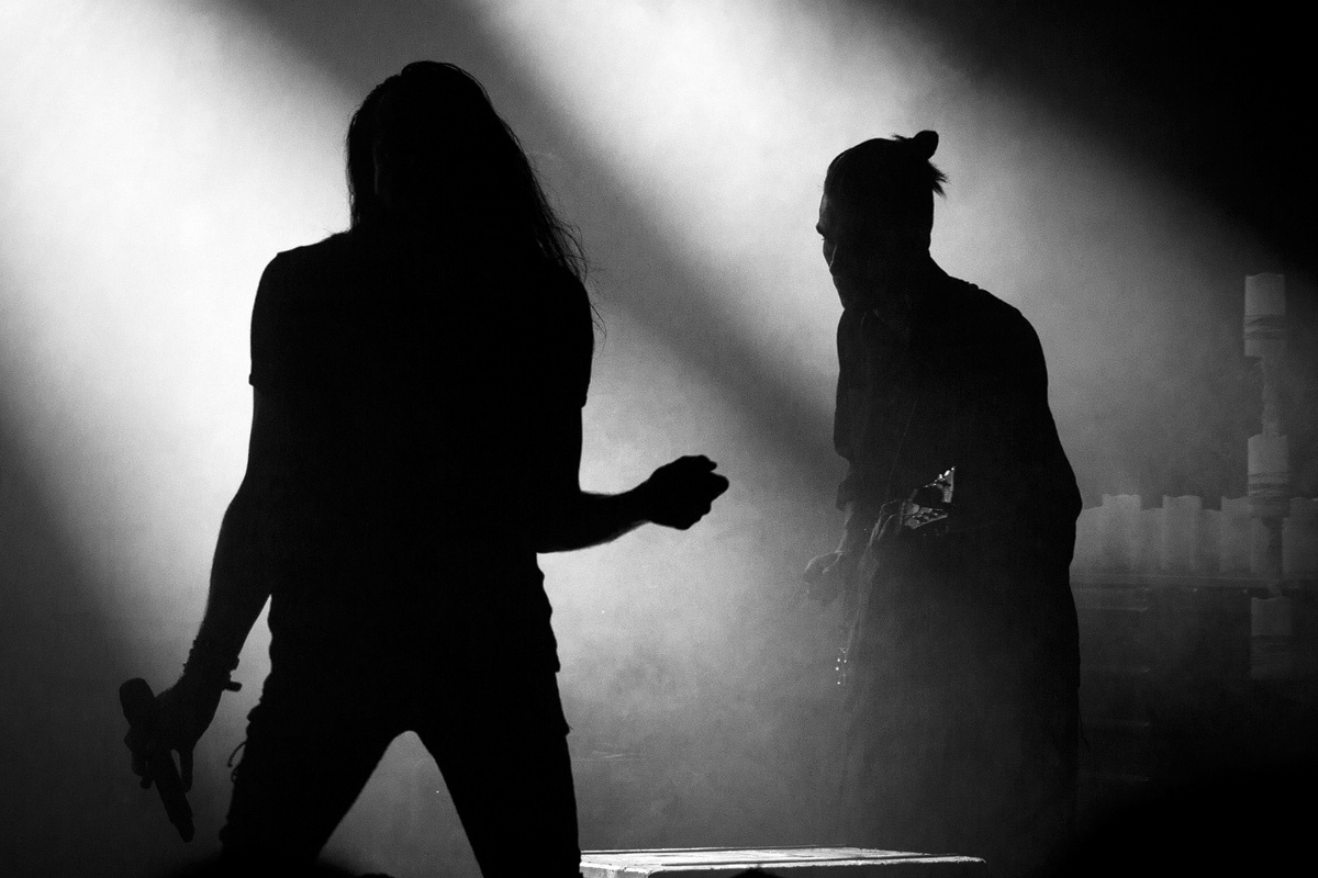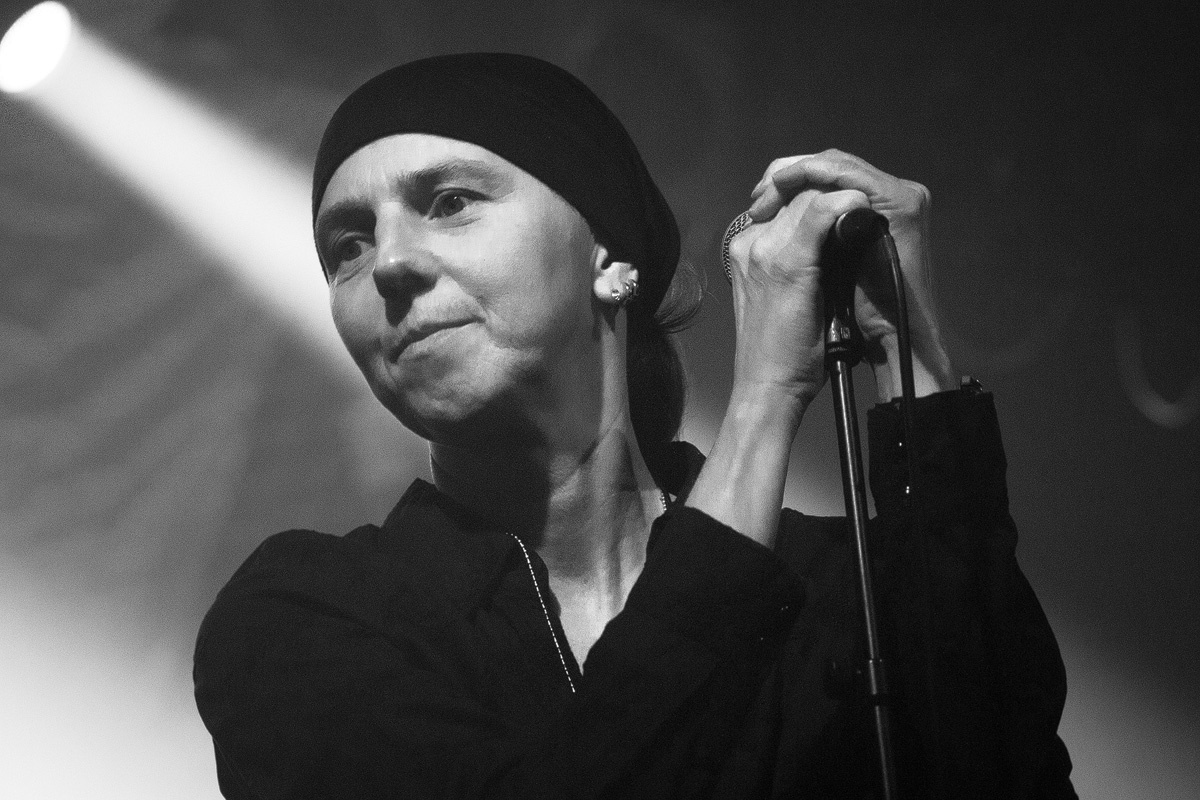 Ein wahrlich ungewöhnlicher Konzertauftakt. Ruhig und zurückhaltend. Doch voller Nachdenklichkeit. Und auch der zweite Titel „Traumsuche“ zeigten „Goethes Erben“ von ihrer stilleren Seite. Sanftes Cellospiel begleitete das Duett von Oswald Henke und Sonja Kraushofer, die auch im weiteren Verlauf des Abends durch ihre Stimmgewalt und ihre theatralische Körpersprache brillierte. Aufregend ihre wie wahnsinnig wirkende Mimik. Eine starke Frau mit einer Ausstrahlung, die den Zuhörer bzw. Zuschauer in den Bann zog und deren Stärke im Zusammenspiel mit Oswald Henke unbedingt nötig ist.