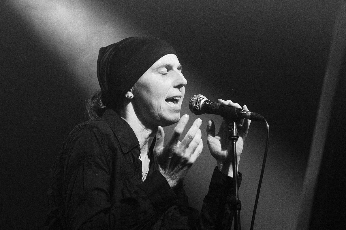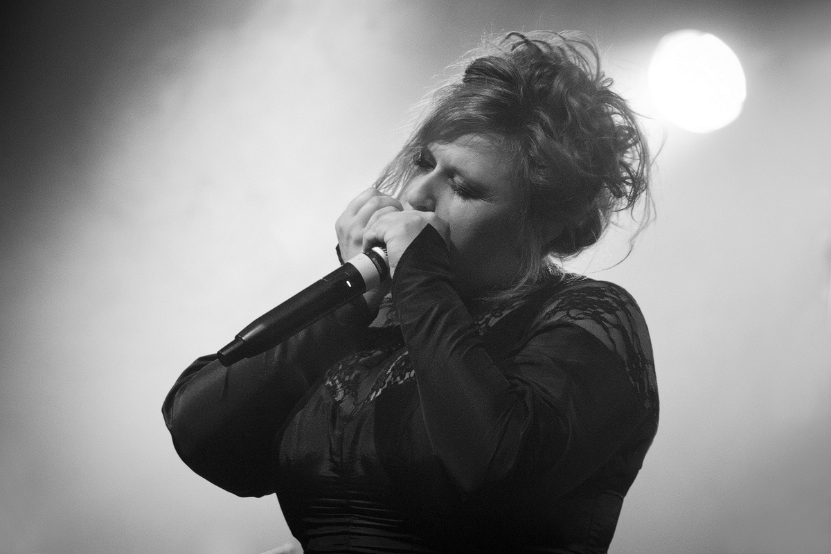 Zwar hätte der Saal noch dem einen oder anderen Besucher Platz geboten, der Stimmung tat dies jedoch weder auf noch vor der Bühne einen Abbruch. Schließlich hatte die Berlinerin Sara Noxx, die den Abend eröffnete, ein Heimspiel. So freute sie sich über einige bekannte Gesichter im Publikum, die ihre Begeisterung deutlich zum Ausdruck brachten. Aber auch die anderen Anwesenden zog die sympathische Sängerin mit ihrer klaren Stimme im Sprechgesang an. Verhaltene Leidenschaft, disziplinierte Körpersprache und doch faszinierend. Elektronisch-kühle Klänge, die an Anne Clark erinnerten. Die Hörerschaft dankte mit angemessenem Beifall.