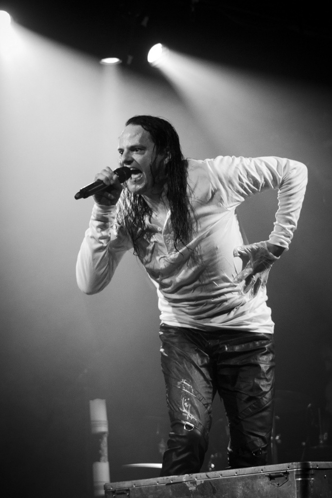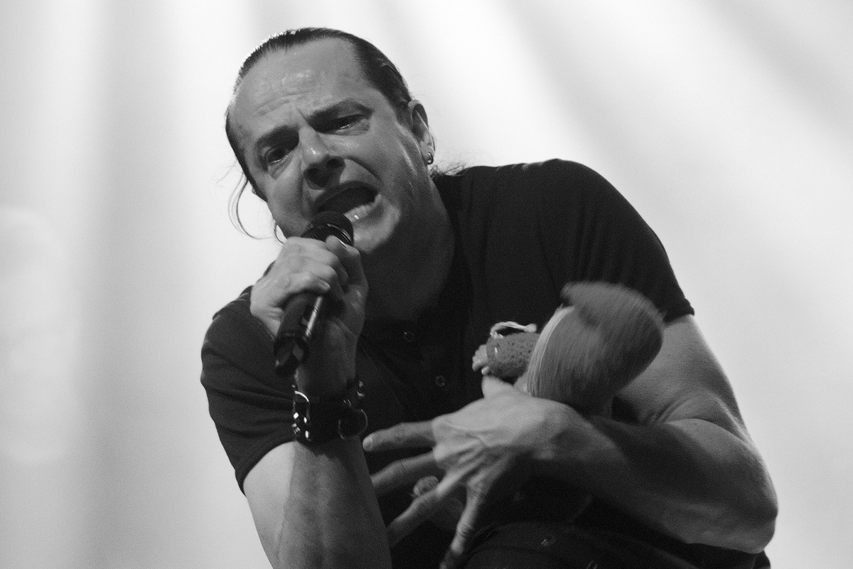 Wer nur ein einziges Mal Oswald Henke auf der Bühne erleben konnte, dem brauche ich wohl nichts mehr berichten. Dominant und immer in Bewegung wird ein Auftritt zu einem der ganz großen emotionalen Erlebnisse. Was habe ich schon alles für Worte gesucht und gefunden, um seine Bühnenpräsenz zu beschreiben: dämonisch beispielsweise. Aber ebenso sind Wut und Leid körperlich spürbar.