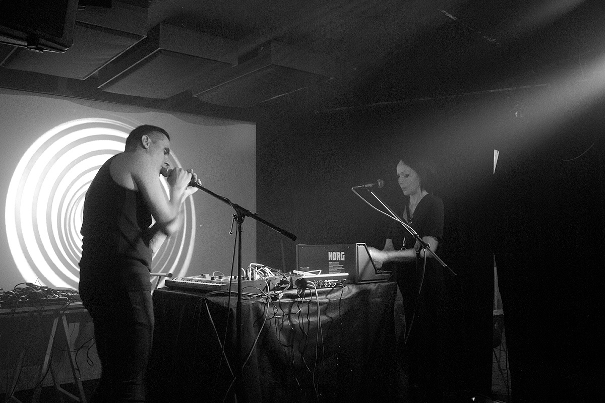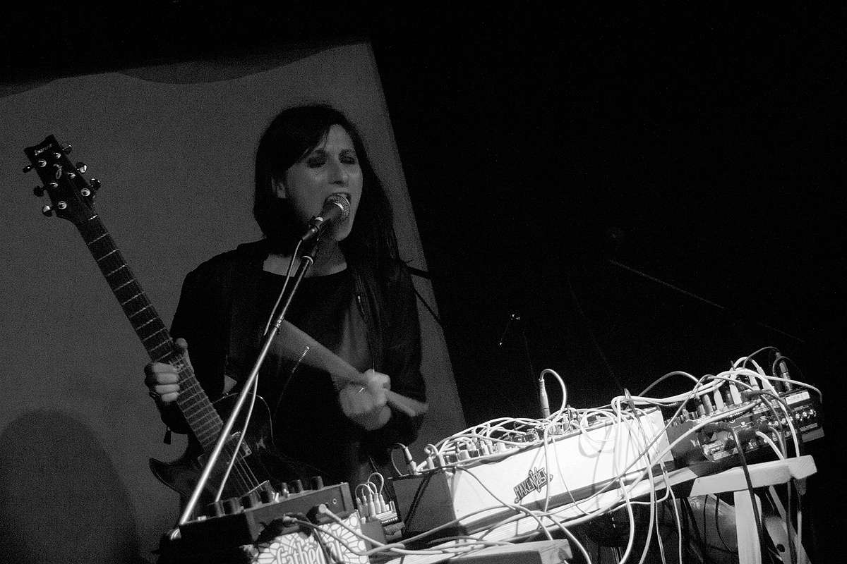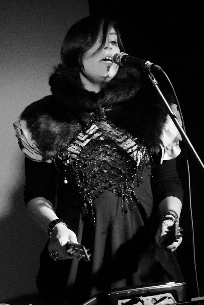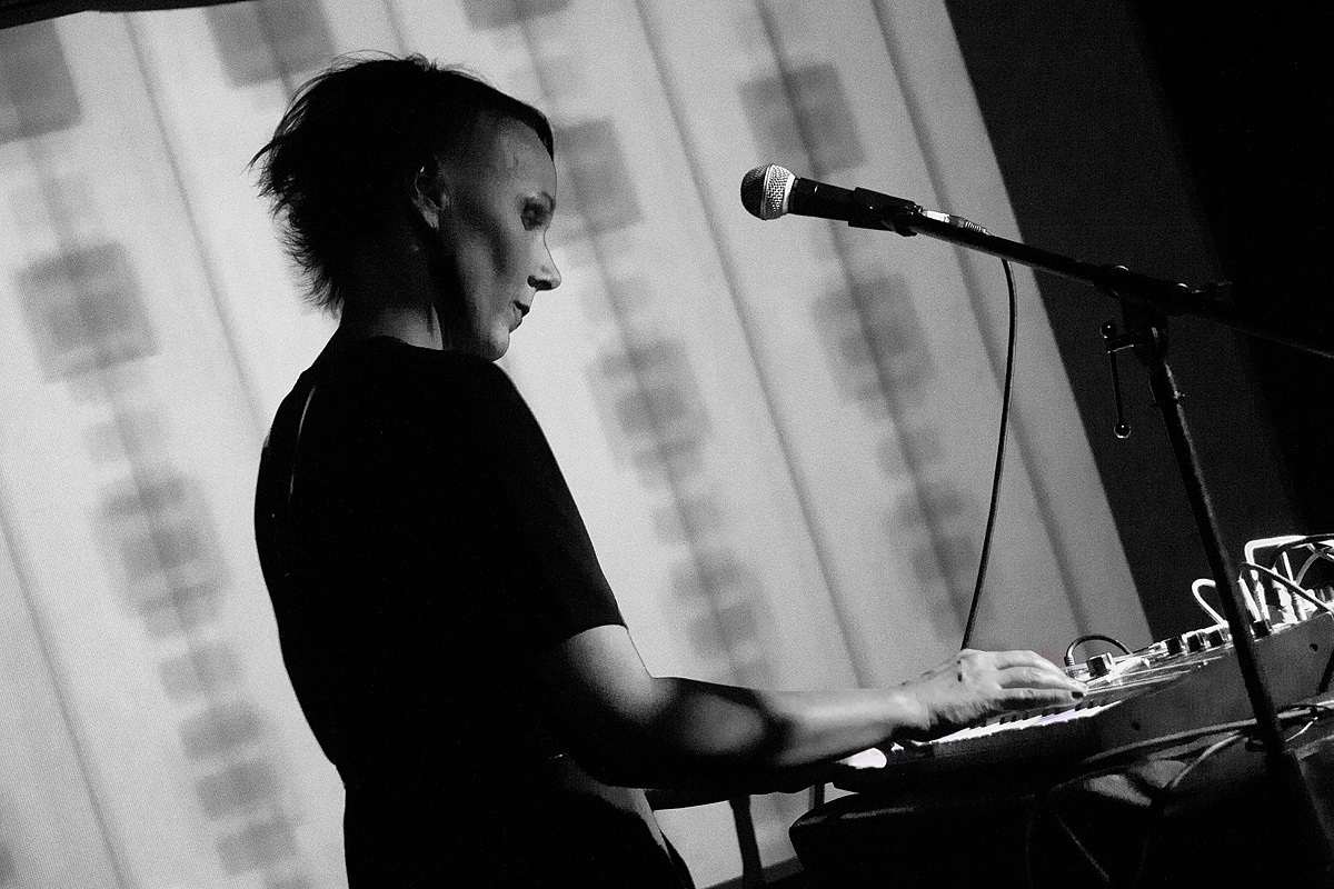 Zum Abschluss des Konzertabends folgte der Hauptgrund, das „Acud macht neu“ an jenem Abend zu besuchen: Dolina. Mit einer aufregenden Stimme zog uns Dolina sofort in ihren Bann. Obwohl auch hier viel Energie in das Drehen von Knöpfchen und das Drücken von Tasten einging und die stimmliche Präsenz nicht voll ausgelebt werden konnte. Normalerweise Kopf eines Trios, für jenen Auftritt aber nur zu zweit angereist, hatte die namensgebende Frontfrau alle Hände voll zu tun. Ein kleines elektronisches Schlaginstrument, welches leicht hallend reagierte und die phantasievollen Kompositionen waren eindrucksvoll und gingen unter die Haut. Kühle, melancholische Balladen, an die 80er Jahre anklingend, drangen wabernd in Ohre und Beine. Der gut gefüllte Raum zeigte sich begeistert.