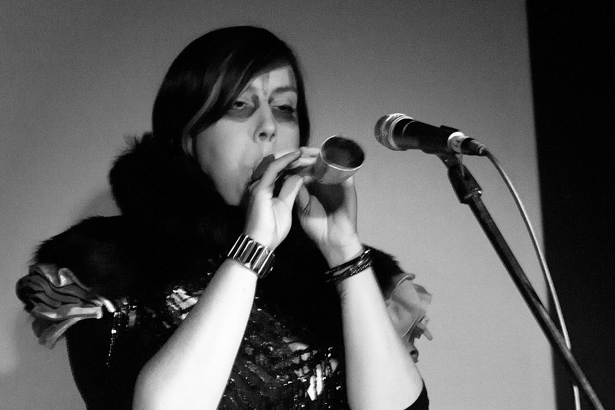 Der Alternative Kunstverein ACUD e.V. hat aus einem abbruchreifen Haus eine Heimat für verschiedene Kunstprojekte geschaffen. In dem Gebäude sind ein Kino, ein Theater, eine Galerie sowie Gastronomie und Büroflächen vorhanden. Ein augenscheinlich tolles Konzept, in dem sicherlich viel Arbeit steckt. Im Parterre finden wir einen kleinen Raum, der für Konzerte zur Verfügung steht. Hier sind wir richtig. Doch bevor die erste Musikerin die Bühne betreten sollte, musste noch das Ende des Spiels abgewartet werden. Mit Herzrasen erlebten die abwechselnd jubelnden deutschen und italienischen Enthusiasten die Verlängerung und das nicht endend wollende Elfmeterschießen, ehe endlich das Konzert beginnen konnte.