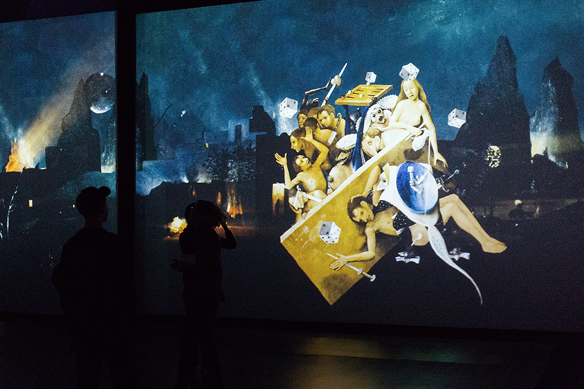 In den Räumen der Ausstellung ‚Hieronymus Bosch. Visions Alive‘ bemühten sich die Organisatoren, sämtliche vorhandenen Informationen über das Leben und die Kunststücke von Bosch zu sammeln, einschließlich der phantastischsten Versionen. Der Multimedia-Teil ist ein echter Karneval der furchtbaren und gleichzeitig attraktiven Gestalten des Malers. Man kann endlos diese Schattenspielwelt mit dem schleimigen Geschmeiß, den dickbäuchigen Ungeheuern, Fischen mit menschlichen Beinen, Leuten mit Fässern statt der Bäuche, spinnenförmigen Wesen betrachten. Nach der Anmerkung von dem Kunsthistoriker Lew Ljubimow: ‚Der Ekel paart sich dort mit dem Ekel und in dieser ekelhaften Kombination wird er auf einmal unheimlich attraktiv. Dieser Ekel, diese Ausgeburt der stinkenden Moraste, der dunklen faulen Innereien scheinen einfach lustig, sogar gemütlich – solche offenherzige innere Freude in den Werken des Künstlers und so erstaunlich ist die Malerei selbst!‘