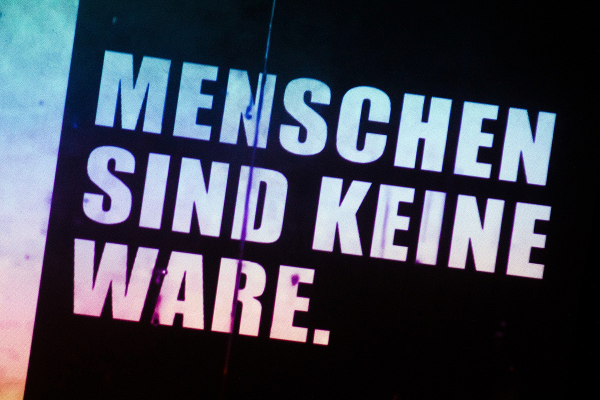 Auch für Gesellschaftskritik war Platz. So wies „Fair shoot“ mit kurzen Darbietungen auf das Thema Menschenhandel und Zwangsprostitution hin. Besonders eindrucksvoll war hierbei die Verbindung der Projektion eines Kunstwerks von Paolo Troilo, Musik von Casper feat. Blixa Bargeld, Dagobert & Sizarr („Lang lebe der Tod“) und der Aufführung der Darstellerinnen. Die präsentierten Daten und Fakten waren und sind erschütternd.