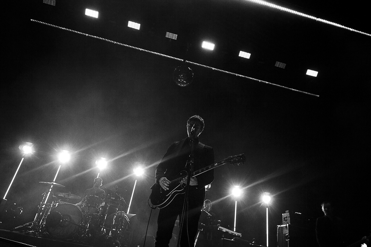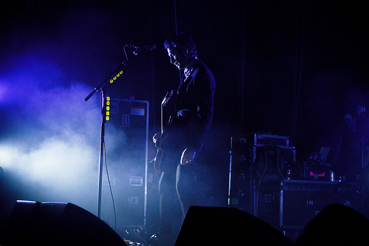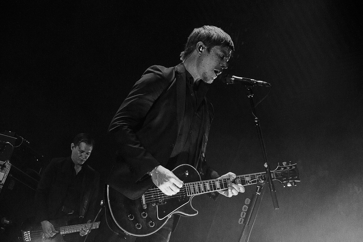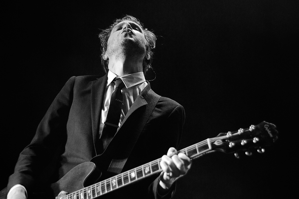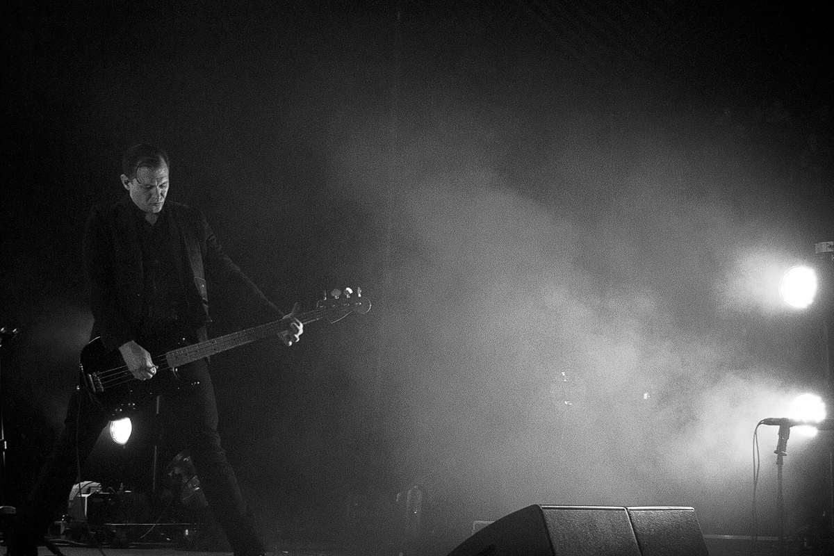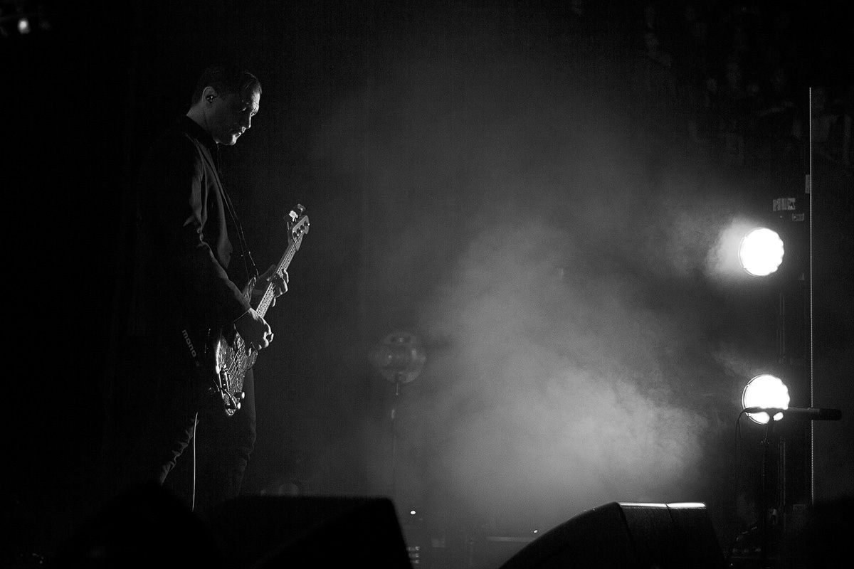 Während der obligatorischen Umbaupause füllt sich die Halle zunehmend. Die Veranstaltung ist erwartungsgemäß ausverkauft. An diesem Abend findet eines von nur zwei Konzerten in Deutschland statt. 4000 Besucher sind in gespannter Erwartungshaltung, ehe die Musiker von Interpol schließlich die Bühne betreten. Überschwängliche Reaktionen lassen nicht lange auf sich warten. In den Texten über Sucht, innere Leere und Selbstmord liegt zuweilen viel Schwermut. Davon ist an jenem Abend jedoch wenig zu spüren. Es wird gejohlt und gesprungen. Arme in die Luft gestreckt. Der Funke der Ausgelassenheit springt bis auf die Ränge über. So manch Besucher erhebt sich von seinem Sitz, um beschwingt zu tanzen. Doch zwischen all den überschwänglichen Menschen, die Interpol feiern, sieht man ebenso einige enttäuschte Gesichter. Besucher, die darauf eingestellt waren, von tiefer Melancholie umhüllt zu werden und sich dieser bindungslos hingeben zu können. Doch die wehmutsvollen, ruhigeren Zwischentöne bleiben zumeist aus. War dies in der Vergangenheit nicht eine Stärke von Interpol? Schaut man sich im Rund des Tempodrom um, hat die Band aber alles richtig gemacht. Die Stimmung ist prächtig. Die Massen lassen sich von dem rockigen, nach vorne gerichteten Auftritt mitreißen. Das Konzert erinnert fast schon ein wenig an große Stadionrockveranstaltungen. Wer dies mag (und das scheinen nicht wenige zu sein), dürfte vlle Zufriedenheit verspüren. Tiefergehende Emotionalität, Schwermut, bedeutungsvolle Gefühle kommen jedoch kaum auf. Es werden keine melancholischen Bilder auf die innere Leinwand projiziert. Schade. Zumindest einzelne Songs hätte man in einem zurückhaltenderen Gewand präsentieren können. Der allgemeinen Stimmungslage hätte dies sicher nicht geschadet. Die Lightshow ist entsprechend. Über den Köpfen der mitunter in blaues Licht gehüllten Musiker schwebt eine Diskokugel, die helle Strahlen in alle Richtungen schickt. Leuchtstäbe und Strahler im Hintergrund produzieren Gegenlicht. Die Emotionalität und Intension der Stücke voller Weltschmerz und Einsamkeit scheint im Gitarrenspiel und Stroboskopgewitter unterzugehen. Aber ich entdecke auch einige Menschen, die mit geschlossenen Augen und in sich versunken tanzen. Vielleicht entsteht an diesem Abend bei vielen die interpolsche Melancholie allein im Geiste…