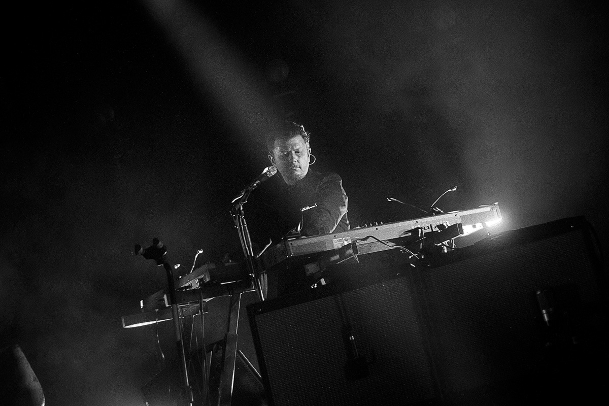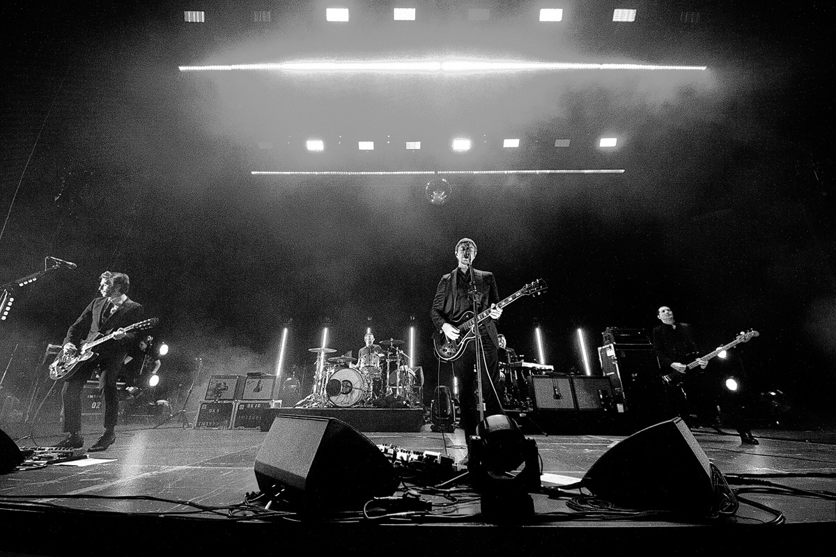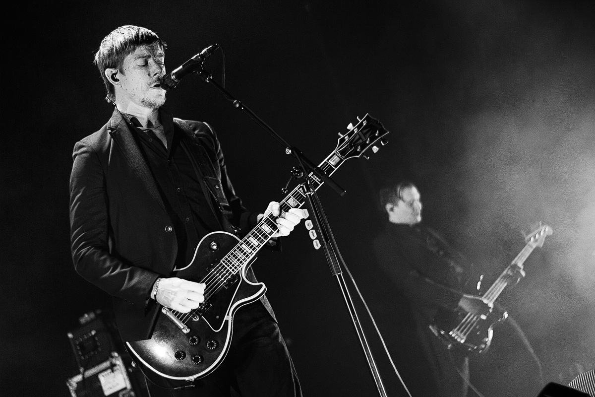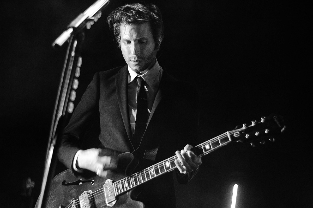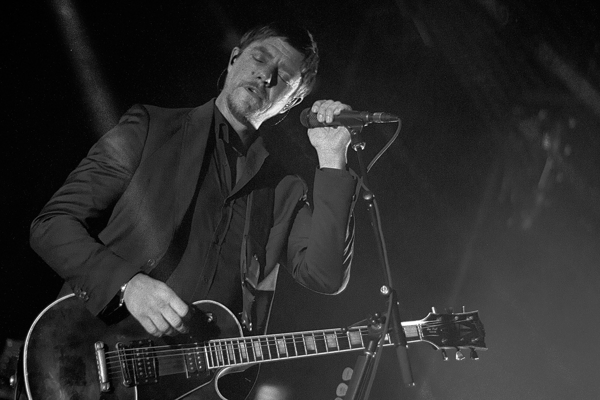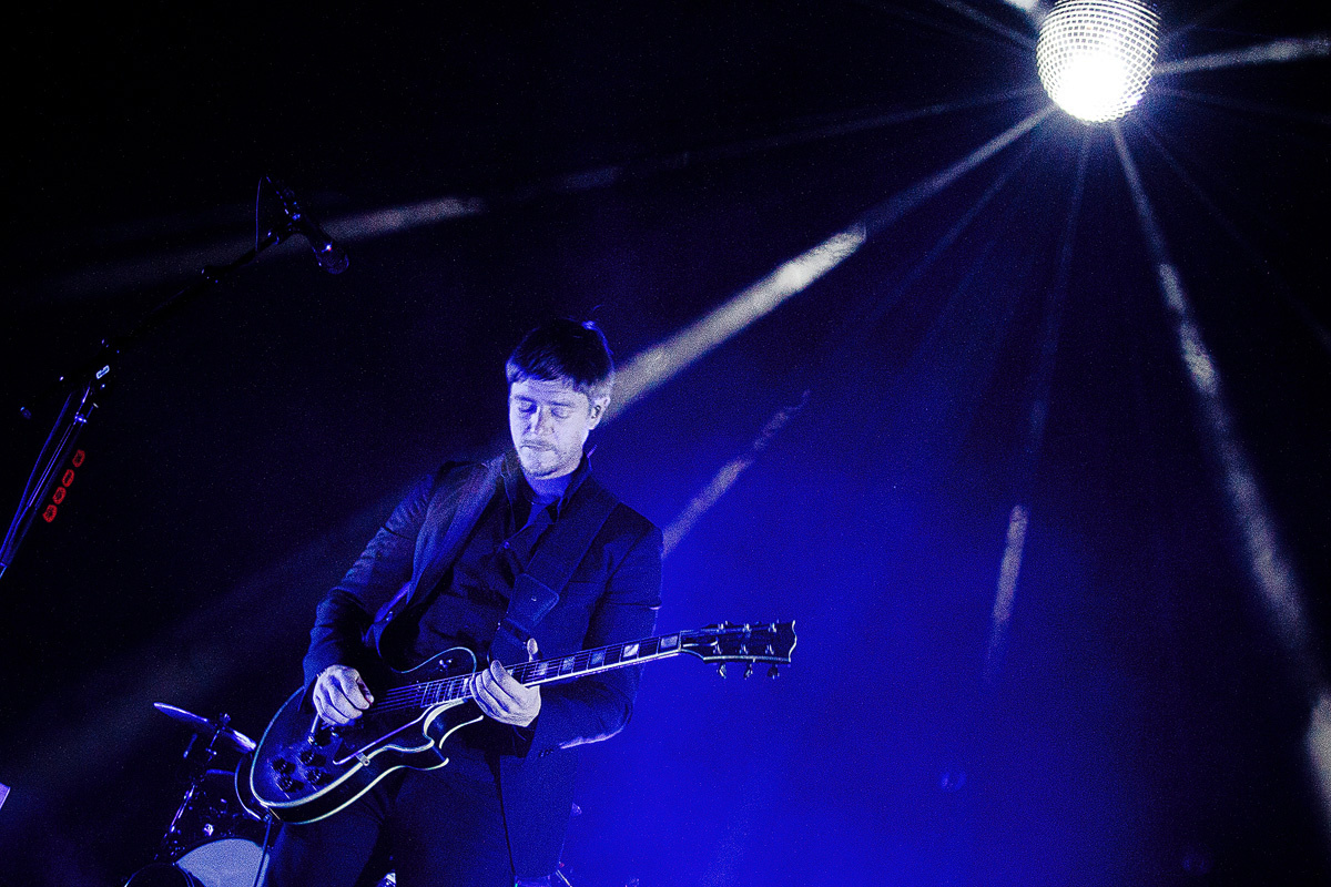 Während der obligatorischen Umbaupause füllt sich die Halle zunehmend. Die Veranstaltung ist erwartungsgemäß ausverkauft. An diesem Abend findet eines von nur zwei Konzerten in Deutschland statt. 4000 Besucher sind in gespannter Erwartungshaltung, ehe die Musiker von Interpol schließlich die Bühne betreten. Überschwängliche Reaktionen lassen nicht lange auf sich warten. In den Texten über Sucht, innere Leere und Selbstmord liegt zuweilen viel Schwermut. Davon ist an jenem Abend jedoch wenig zu spüren. Es wird gejohlt und gesprungen. Arme in die Luft gestreckt. Der Funke der Ausgelassenheit springt bis auf die Ränge über. So manch Besucher erhebt sich von seinem Sitz, um beschwingt zu tanzen. Doch zwischen all den überschwänglichen Menschen, die Interpol feiern, sieht man ebenso einige enttäuschte Gesichter. Besucher, die darauf eingestellt waren, von tiefer Melancholie umhüllt zu werden und sich dieser bindungslos hingeben zu können. Doch die wehmutsvollen, ruhigeren Zwischentöne bleiben zumeist aus. War dies in der Vergangenheit nicht eine Stärke von Interpol? Schaut man sich im Rund des Tempodrom um, hat die Band aber alles richtig gemacht. Die Stimmung ist prächtig. Die Massen lassen sich von dem rockigen, nach vorne gerichteten Auftritt mitreißen. Das Konzert erinnert fast schon ein wenig an große Stadionrockveranstaltungen. Wer dies mag (und das scheinen nicht wenige zu sein), dürfte vlle Zufriedenheit verspüren. Tiefergehende Emotionalität, Schwermut, bedeutungsvolle Gefühle kommen jedoch kaum auf. Es werden keine melancholischen Bilder auf die innere Leinwand projiziert. Schade. Zumindest einzelne Songs hätte man in einem zurückhaltenderen Gewand präsentieren können. Der allgemeinen Stimmungslage hätte dies sicher nicht geschadet. Die Lightshow ist entsprechend. Über den Köpfen der mitunter in blaues Licht gehüllten Musiker schwebt eine Diskokugel, die helle Strahlen in alle Richtungen schickt. Leuchtstäbe und Strahler im Hintergrund produzieren Gegenlicht. Die Emotionalität und Intension der Stücke voller Weltschmerz und Einsamkeit scheint im Gitarrenspiel und Stroboskopgewitter unterzugehen. Aber ich entdecke auch einige Menschen, die mit geschlossenen Augen und in sich versunken tanzen. Vielleicht entsteht an diesem Abend bei vielen die interpolsche Melancholie allein im Geiste…