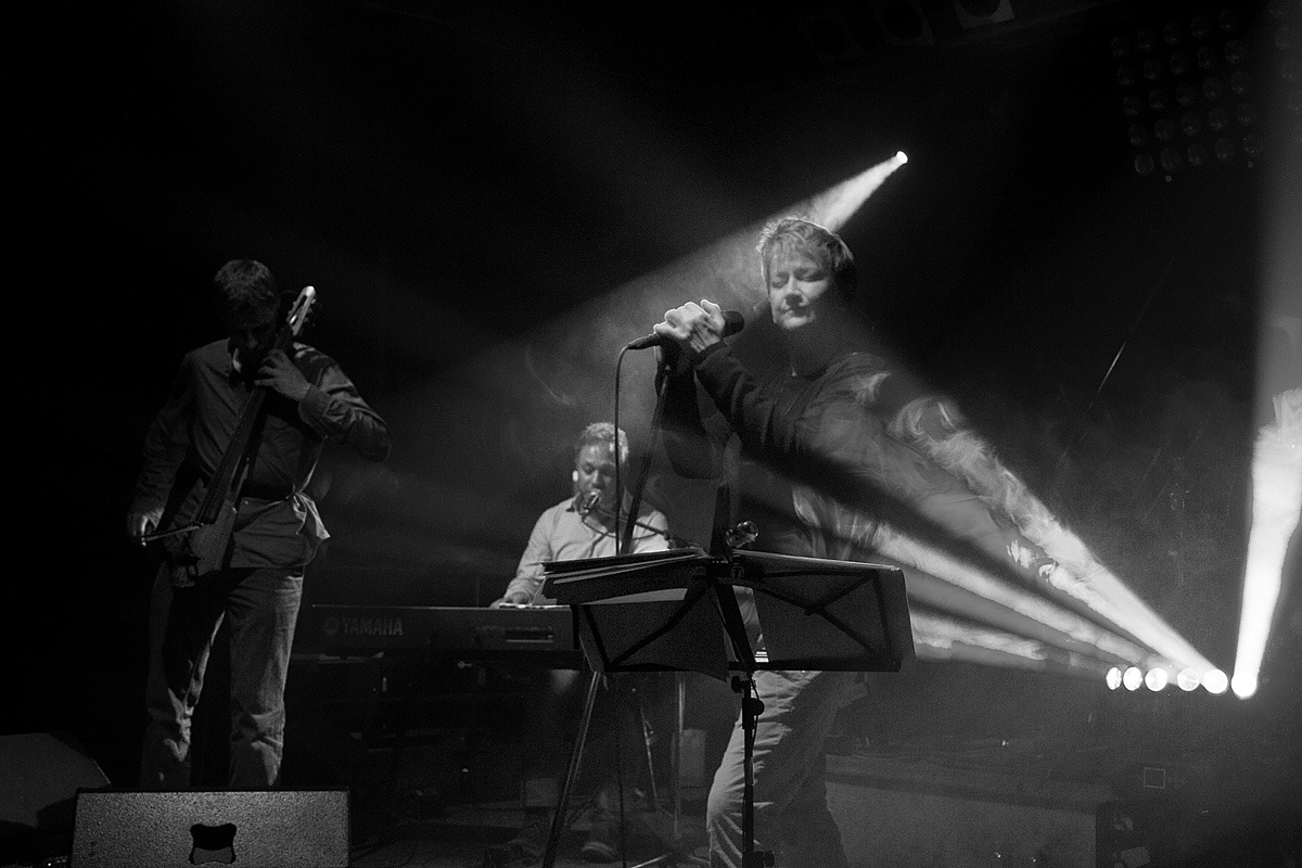Ehe Anne Clark unter Beifall die Bühne betrat, wurde der Abend durch ein Instrumentalstück eingeleitet, bei dem die Band frühzeitig ihr großes Können unter Beweis stellte. Die musikalische Darbietung der folgenden etwa eineinhalb Stunden lässt sich nur schwerlich in eine Schublade stecken. Der synthetisch-kühle Klang der 80er mischte sich mit den warmen Klängen von Gitarre, Schlagzeug, Cello und Keyboard. Hier und da meine ich sogar einen Hauch Jazz oder lateinamerikanische Folklore herausgehört zu haben. Es war gerade diese Zusammenstellung, die verschiedene Hörgewohnheiten ansprach und auf eine gemeinsame Ebene zusammenführte.