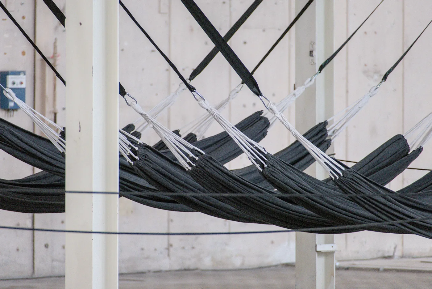Ruhebereiche waren Teil des Konzepts. In einer der großen Hallen hingen auf mehreren Ebenen Hängematten. Der Hof bot eine Möglichkeit, durchzuschnaufen, ehe man in die nächste künstlerische Erfahrung eintauchte. Auf einer Empore befanden sich Schaukeln, auf denen man spielerisch eine kleine Auszeit nehmen konnte.