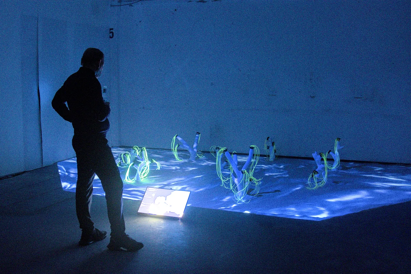 Die Natur rückte ebenfalls in den Fokus: Chamaechorie von CX Collective & Kling Klang Klong ließ künstliche Tumbleweeds (wörtlich „Taumelkraut“) durch den Raum rollen – ein Spiegelbild für Freiheit und die Grenzen der Natur. Corals von Marco Barotti nutzte Echtzeitdaten zu Ozeanbedingungen, um die fragile Schönheit und Zerbrechlichkeit der Meere zu zeigen. Eine weitere Arbeit von Yasuhiro Chida (Aftereal), bei der Fäden gespannt wurden, komplettierte die künstlerischen Installationen des Festivals.