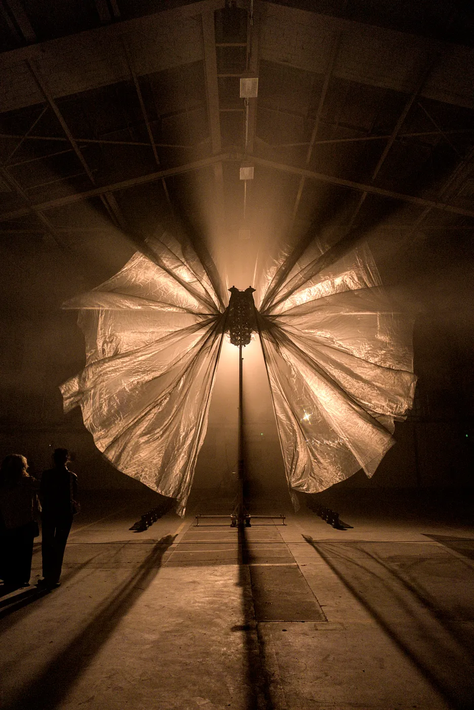 Anschließend führte der Weg in eine zweite große Halle zur Installation The Bird of a Thousand Voices von Boris Acket und Ruben Van Leer. Anfangs fiel Tageslicht durch die riesigen Fenster auf die beweglichen Flügel der Skulptur, nach Einbruch der Dunkelheit änderte künstliches Licht die Wirkung. Plötzlich erschien die Konstruktion geheimnisvoller, teils sogar unheimlich.