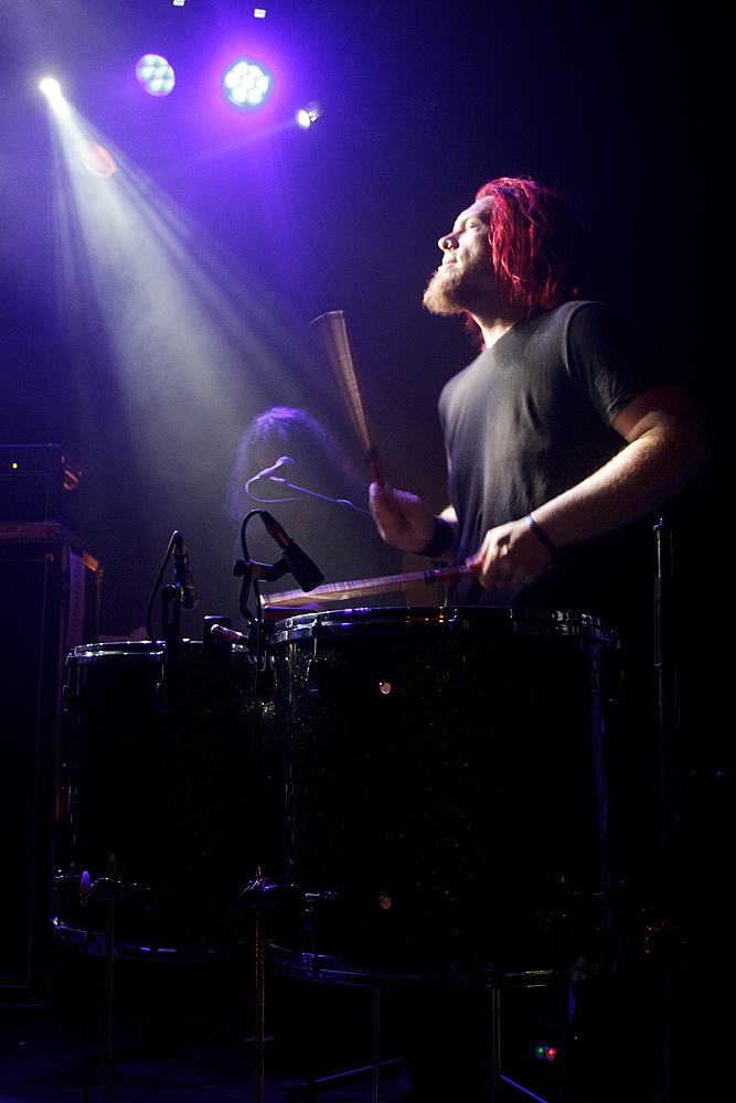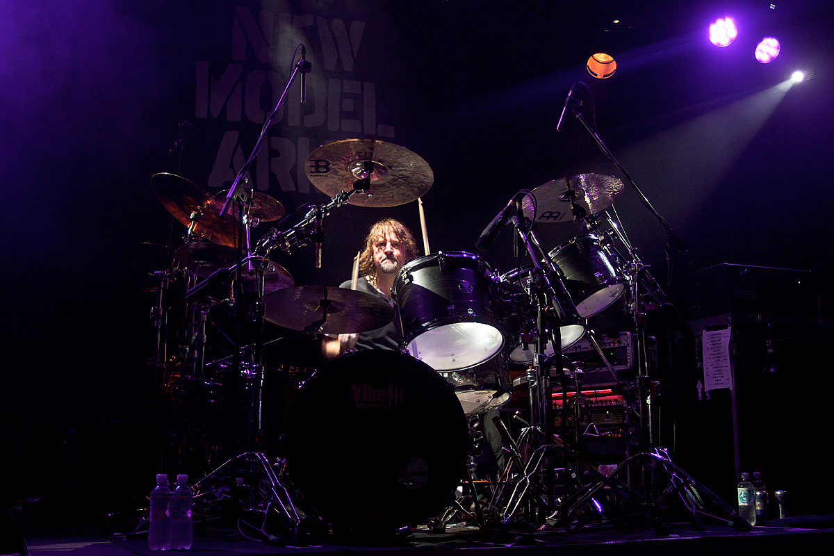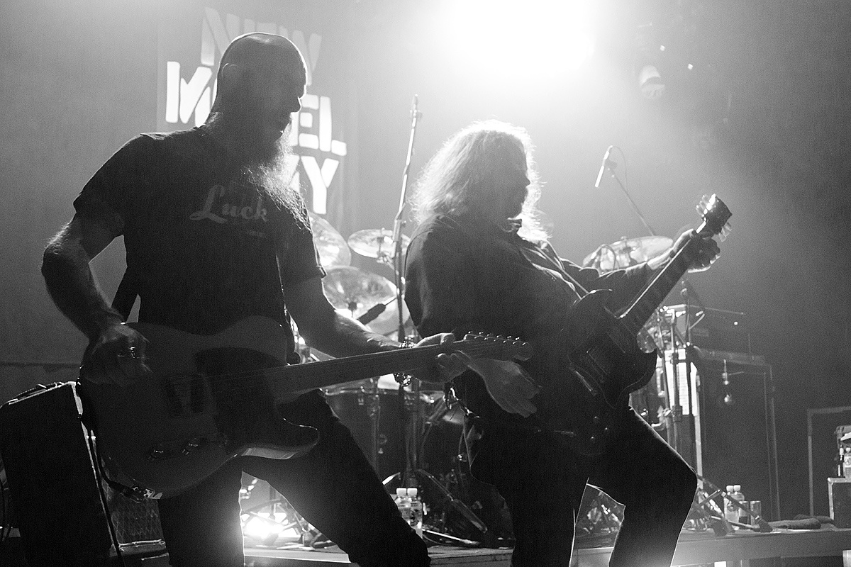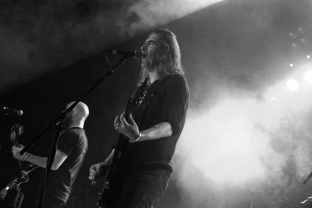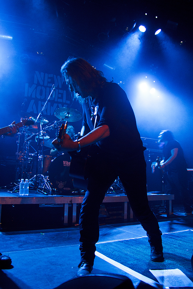 Nach der obligatorischen Umbaupause und einigen lautstarken Rufen betraten endlich „New Model Army“ die Bühne und stellten sofort unter Beweis, dass sie nichts von ihrer Wut abgelegt haben. Marshall Gill (Gitarre), Dean White (Keyboard/ Gitarre), Ceri Monger (Bass), Michael Dean (Schlagzeug) und natürlich Justin Sullivan (Gesang/Gitarre) boten ein perfektes und routiniertes Zusammenspiel. Routiniert? Sicherlich. Aber alles andere als leidenschaftslos. Im Gegenteil. Enthusiasmus und Freude waren unübersehbar. Laut und heftig trieb Schlagzeuger Michael Dean die Songs voran. Bass und Gitarren sind druckvoll und melodisch. Und die Stimme von Justin Sullivan stark und fesselnd. Faszinierend mit welcher Leidenschaft alte wie auch neue Texte vorgetragen wurden. Gänsehaut pur. Einige Momente gestalteten sich besonders intensiv. Beispielsweise als Ceri Monger seinen Bass abstellte und hinter zwei Trommeln Aufstellung nahm oder als Justin Sullivan einen Text ohne instrumentale Unterstützung rezitierte. „New Model Army“ können aus einem schier endlosen Repertoire, welches sich auf über ein Duzend Alben verteilt, schöpfen. Und so verging die Zeit wie im Flug. Und obwohl nach der (ersten) Zugabe bereits Konservenmusik aus den Boxen drang, ließen sich es „New Model Army“ nicht nehmen, nochmals auf die Bühne zurückzukehren, um die begeisterte Menge mit den Klängen des grandiosen Klassikers „I love the world“ (1989) in die Nacht zu verabschieden.