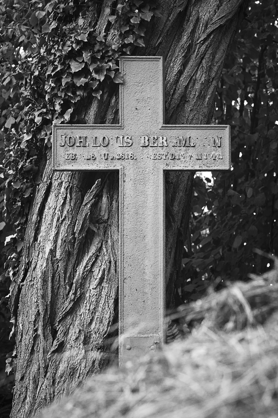 Während meines Spaziergangs entdeckte ich einige Totenschädel, die mich an die Endlichkeit des Lebens erinnerten – Memento Mori, eine stille Mahnung, die Zeit auf Erden zu schätzen. Der alte Baumbestand und der herbstliche Efeu, der sich an den Backsteinmauern der alten Friedhofsverwaltung emporrankte, verliehen diesem Ort einen Hauch von Romantik.