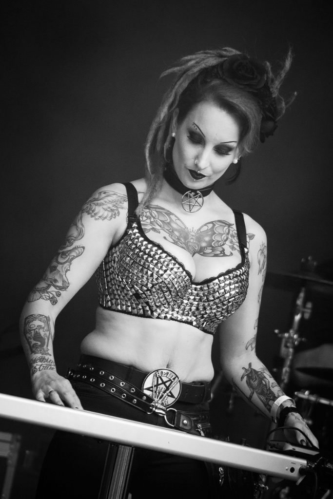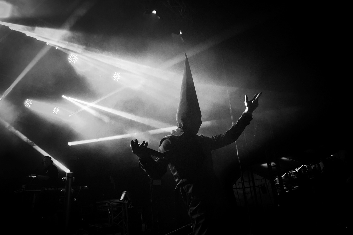 Das NCN zeichnet sich schließlich ferner dadurch aus, ungewöhnlichen Projekten und musikalischen Nischen eine Bühne zu bieten. So wie „The Red Paintings“, die teils durch ein extravagantes, fernöstliches Erscheinungsbild und eine Kunstperformance, bei der ein menschlicher Körper bemalt wurde, die Blicke auf sich zogen. Als mindestens ebenso außergewöhnlich darf das nächtliche Konzert von „Zanias“ bezeichnet werden. Mit einer an eine schamanische Hohepriesterin erinnerten kühlen Aura fesselte Zoé Zanias (bekannt als Stimme von „Keluar“ und „Linea Aspera“) das Publikum. Beispielhaft war außerdem der mehr als verstörende Auftritt von „Antichildleague“ (ACL), deren einziges Mitglied Gaya Donadio sich ein schwarzes Tuch mit Sehschlitz um den Kopf band, Handschuhe mit peitschenähnlichen Verlängerungen an den Fingern trug, die wiederholt auf dem Rücken der Protagonistin landeten und elektronischen Gerätschaften lärmende Klänge entlockte. Für mich zu lärmend, aber ein Beweis, dass die Veranstalter schwer zugänglichen Projekten Platz einräumen, welche von den meisten Festivals unbeachtet bleiben.