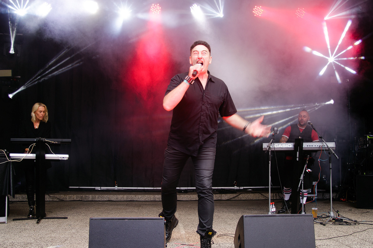 Nicht wenige Besucher erfreuten sich unübersehbar an den stampfenden und treibenden Rhythmen diverser EBM-Bands wie „Sturm Café“, „Wulfband“ und „Pouppèe Fabrikk“, die für viel Bewegung sorgten.