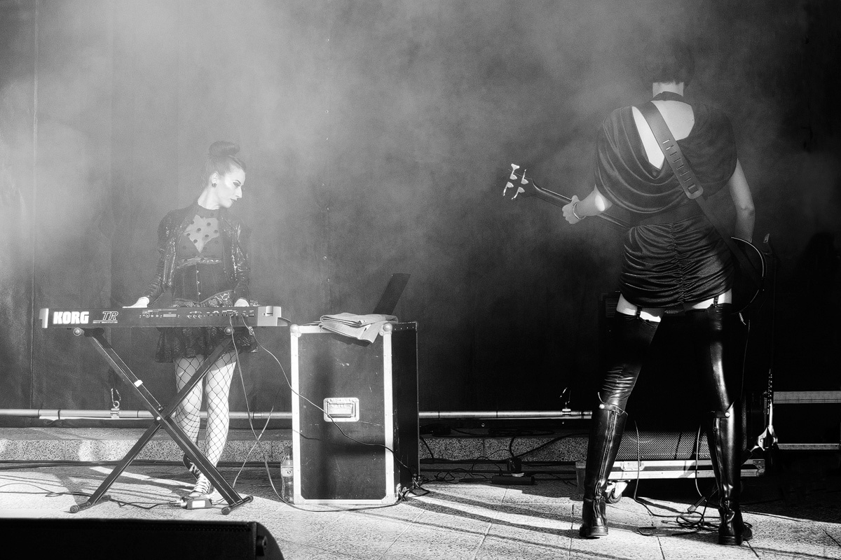 Auf selbiger Bühne konnte vorher schon die italienische Band „Ash Code“, bei der ein sechssaitiger Bass stillprägend ist, mehr als überzeugen und für einen weiteren Höhepunkt sorgen. Die Zwillinge Alessandro und Adriano Belluccio – zwei Drittel der Besetzung – waren bereits zum dritten Mal zu Gast beim NCN, wo sie 2013 mit ihrer Band „Low-Fi“ erstmalig ihr großes Gespür für Melodien bewiesen haben. Zusammen mit Claudia Nottebella präsentierten sie nun herrlich melancholischen und tanzbaren Dark Wave. Manch Festivalgast schloss die Augen und ließ sich von der Musik treiben…