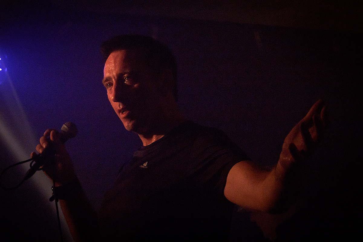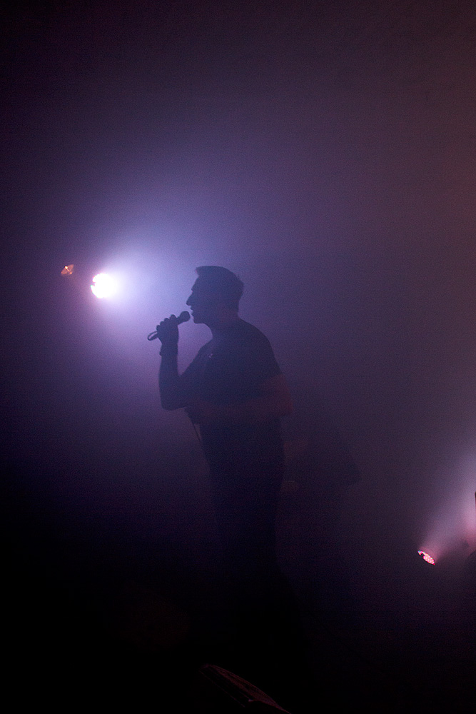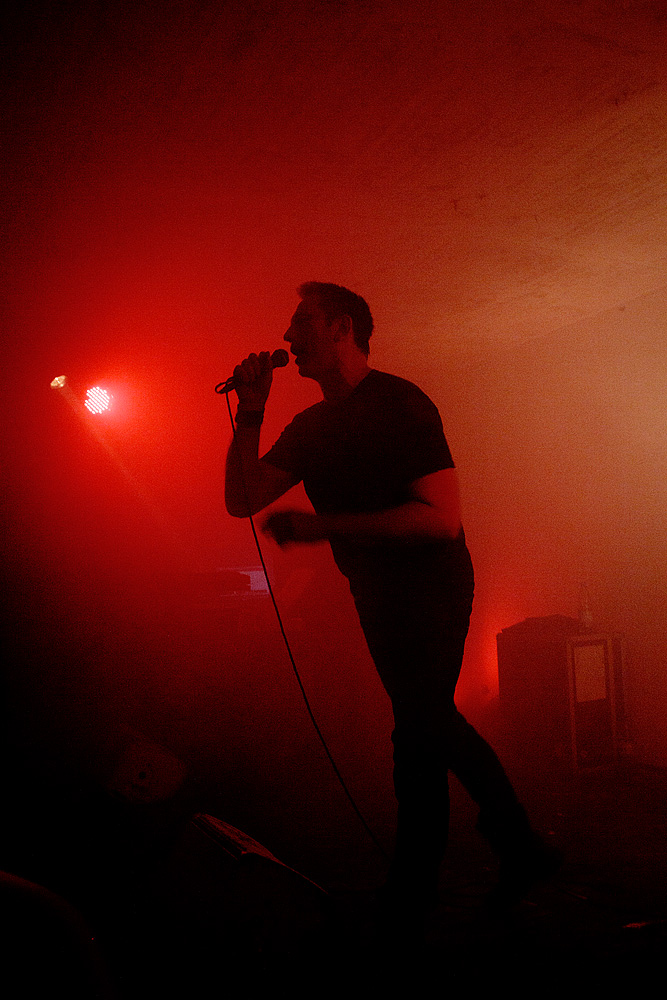 Vom ersten Ton an wissen die zwei Protagonisten auf der Bühne das Publikum auf ihrer Seite. Druckvoll suchen sich die Rhythmen den Weg in die Glieder der Zuhörer. Ein stilles Verharren in Anbetracht der schnell auf Saunaniveau steigenden Temperaturen wäre durchaus nachvollziehbar und angebracht, aufgrund der Darbietung aber schier unmöglich. Ob nun Klassiker (beispielsweise „Devil Dance“) oder neues Material („Dark Eye“) präsentiert werden, spielt keine Rolle: Die Begeisterung und der Bewegungsdrang sind groß und der Schweiß läuft in Strömen über zufriedene Gesichter auf als auch vor der Bühne. Nicht jeder zeigt das entsprechende Durchhaltevermögen und so schleppen sich wiederholt einige Gäste nach draußen, um der Forderung des Körpers nach Sauerstoff nachzukommen. Schnell werden die frei gewordenen Plätze jedoch von anderen Liebhabern elektronischer Klänge eingenommen. So bleibt die Stimmung auf einem konstant hohen Level.