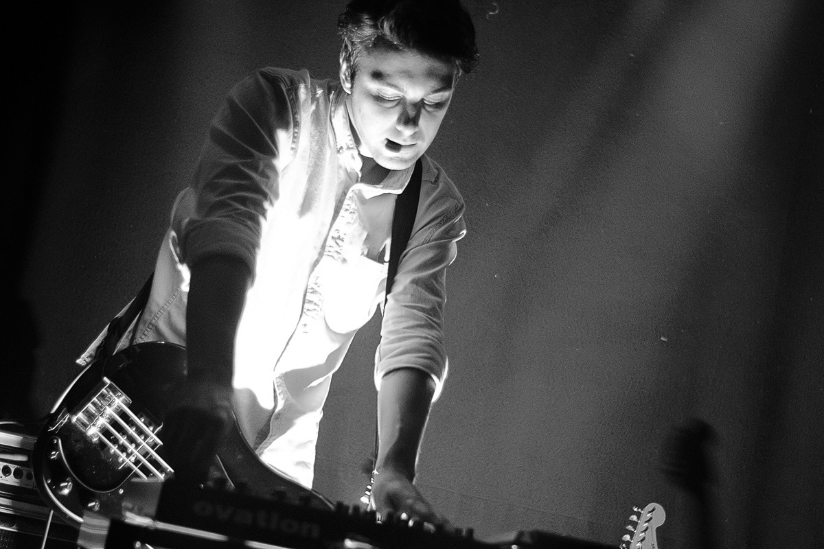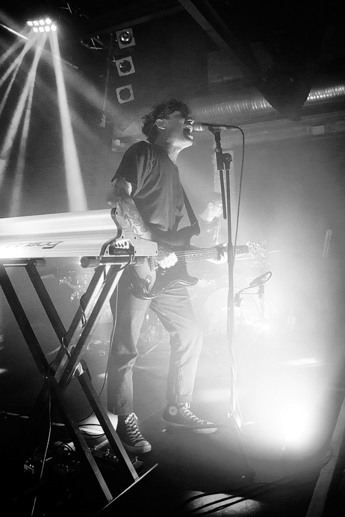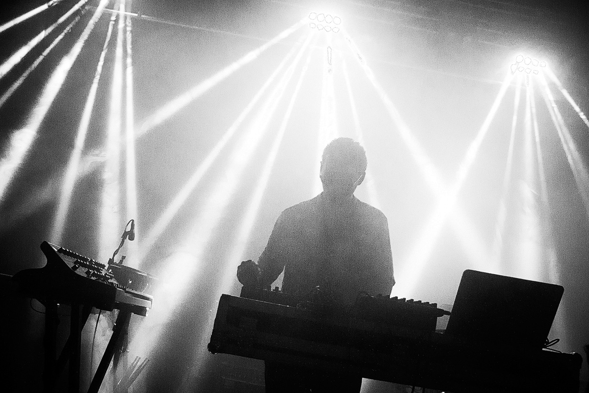 WIESBADEN, SCHLACHTHOFMit den Worten entschleunigt, experimentell, unaufgeregt, sphärisch lässt sich der Beginn des Soloauftritts von Matteo Vallicelli – in der Funktion des Schlagzeugers von „The Soft Moon“ später nochmals auf der Bühne zu sehen – gut beschreiben. Das elektronisch-instrumentale Set, welches durch die lebhafte Techno-Szene der deutschen Hauptstadt (Wahlheimat des italienischen Musikers seit 2013) geprägt wurde, baute ganz langsam Spannung auf. Eine gewisse Geduld war hierbei durchaus gefragt, ehe sich der „Giungla Elettrica“ („elektrischer Dschungel“) durch die Hinzugabe von rhythmischen Elementen vollends entfaltete. Eine ansprechende Eröffnung des Abends – nicht mehr und nicht weniger.