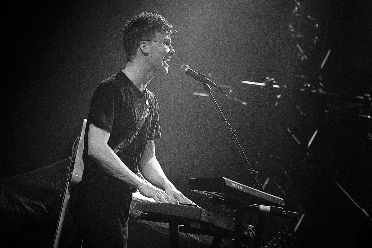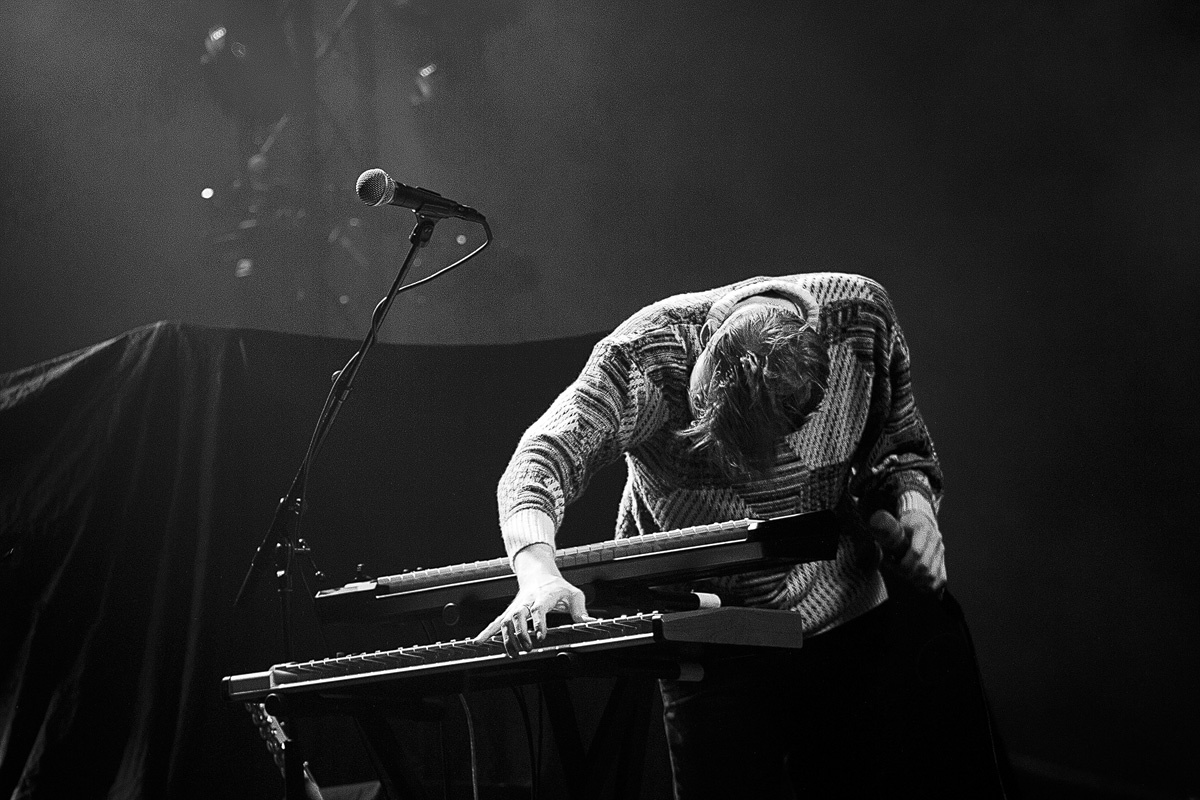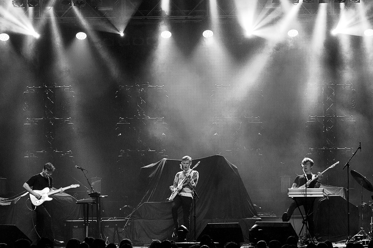 Mit zurückhaltenden Keyboardklängen und ganz ohne den Einsatz von Gitarren startete der Auftritt der „White Lies“. Doch der gefühlsbetonte, über siebenminütige Epos „Time to give“, welcher auch das aktuelle Album eröffnet, lässt nach und nach Raum für weitere Instrumente, um sich gemächlich aufzubauen und die Anwesenden zunehmend auf die noch kommenden Stücke einzustimmen. Bereits mit dem anschließenden Klassiker „Farewell to the Fairground” befand sich das Publikum im Konzertmodus. Weitere Überzeugungsarbeit musste kaum geleistet werden. Mit „Believe it” folgte ein weiterer Song des kürzlich erschienenen fünften, schlicht „Five“ betitelten Albums. Und was für einer. Der Refrain grub sich umgehend voller Macht in die Gehörgänge und setzte sich im Gedächtnis fest. Noch lange hallten die von Harry McVeigh gesungenen Worte des für diese Band so typisch eingängigen Chorus im Kopf nach: